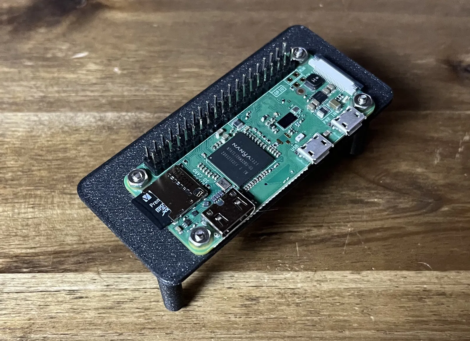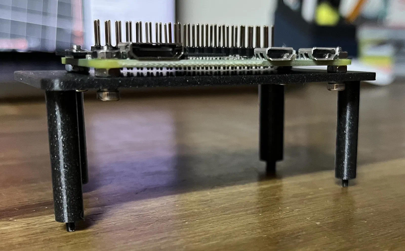 Một bệ đỡ giúp gắn ổn định PI Zero 2W vào trong hộp điện (electrical enclosure) thông qua bộ nguồn. Bệ sẽ bấm khớp (snap) vào các lỗ được định sẵn trong hộp.