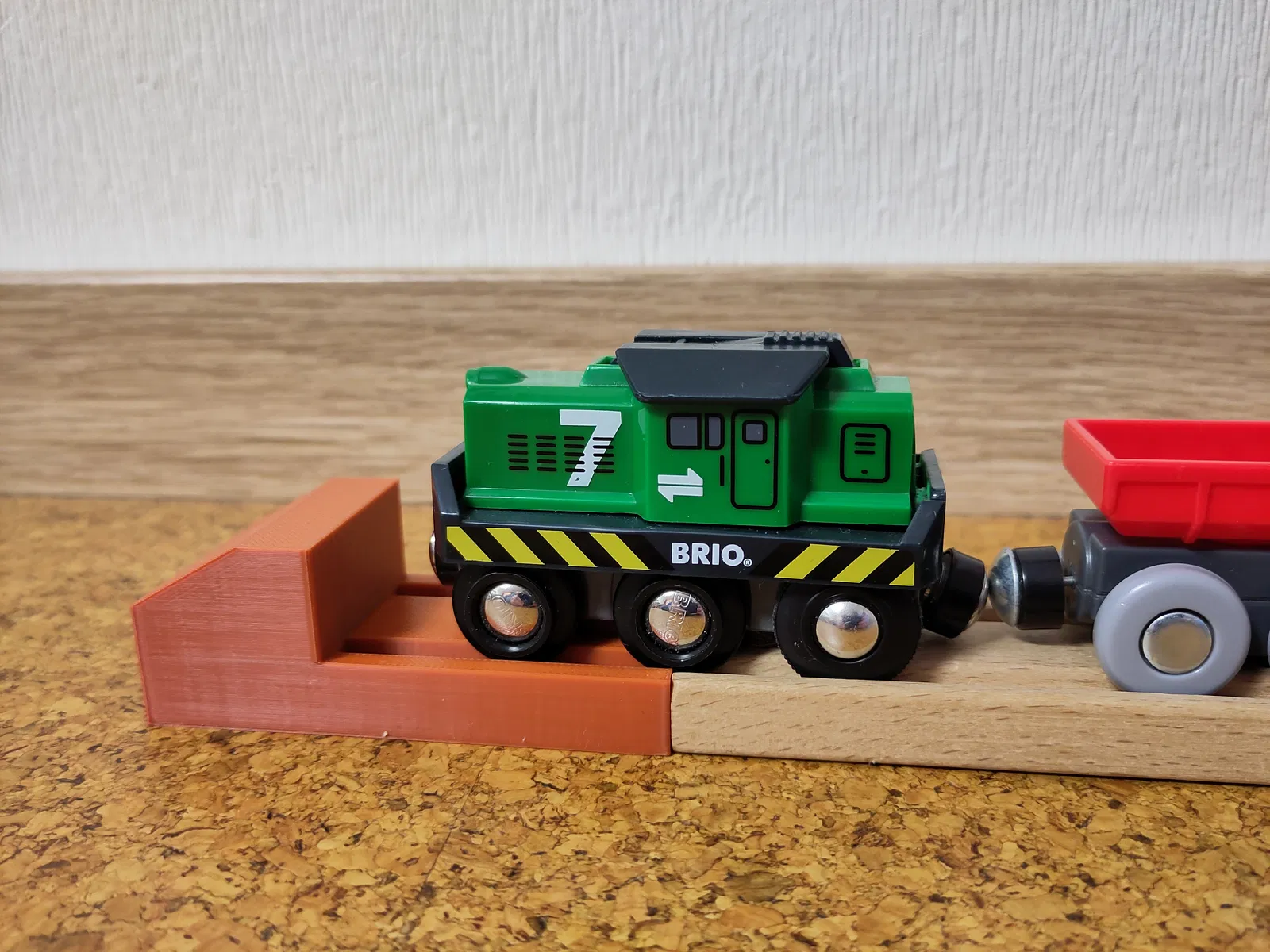 Khối chặn dừng tàu tương thích Brio này có một phần gờ (threshold) để kích hoạt chế độ dừng, ví dụ như với mẫu “BRIO World 33214 Batterie-Frachtlok”. Có thể nó cũng tương thích với các mẫu khác nhưng mình chỉ mới thử với mẫu này. Đầu máy này có một cảm biến nhỏ ở mặt dưới, và cảm biến sẽ được kích hoạt bởi phần gờ trên khối chặn dừng. Vì vậy tàu sẽ tự động dừng lại trước khối chặn dừng.