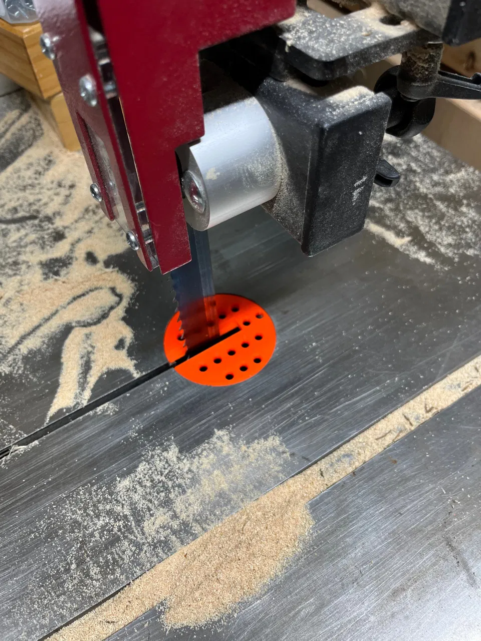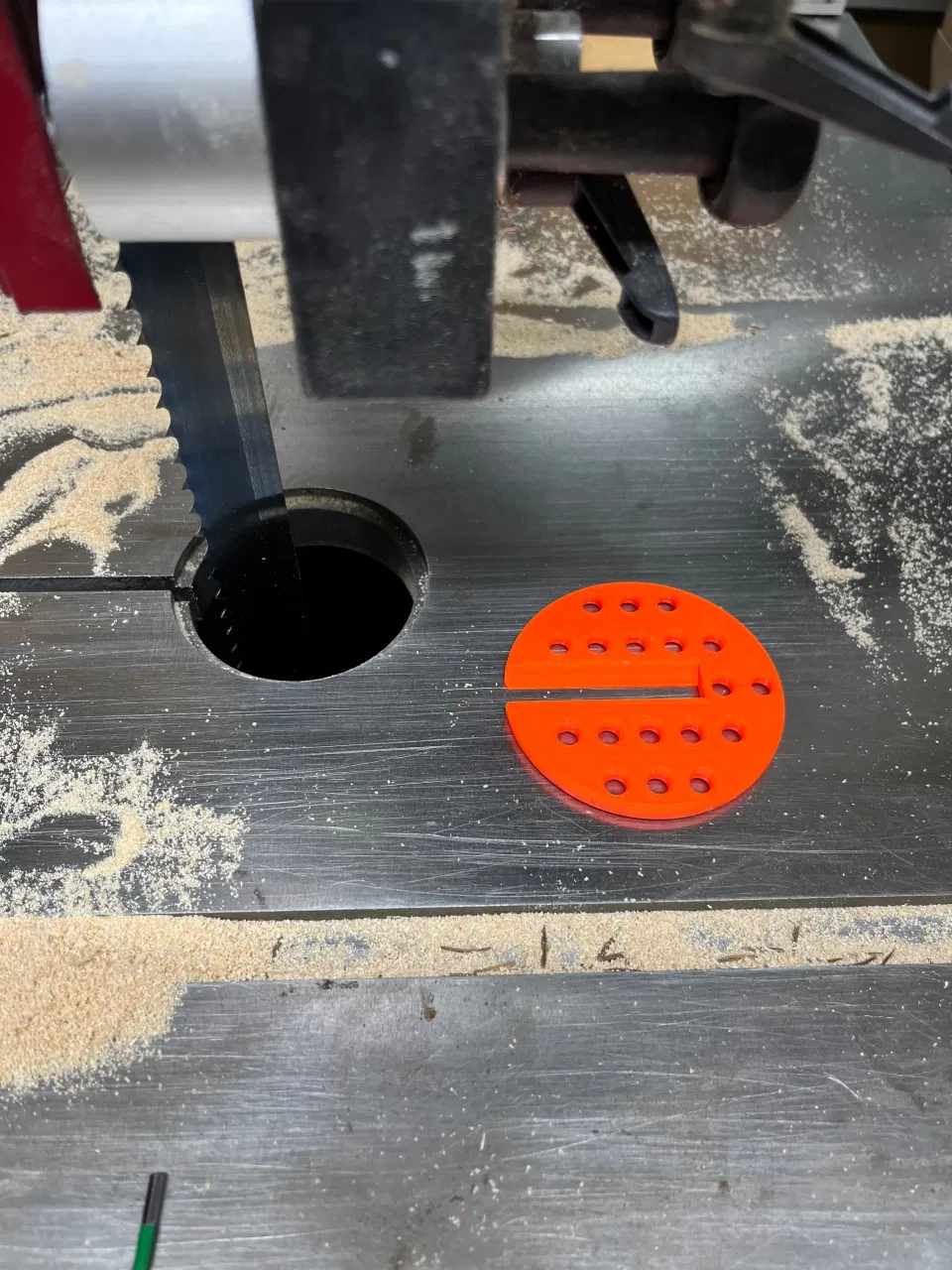 Tischeinlage cho máy cưa vòng Hammer N4400 có lỗ hút bụi. File in dễ làm, vật liệu không kén. Thông số gợi ý: layer 0,2 mm, 3 perimeters, không cần supports, infill 30% dạng lưới. ĐK 70 mm.