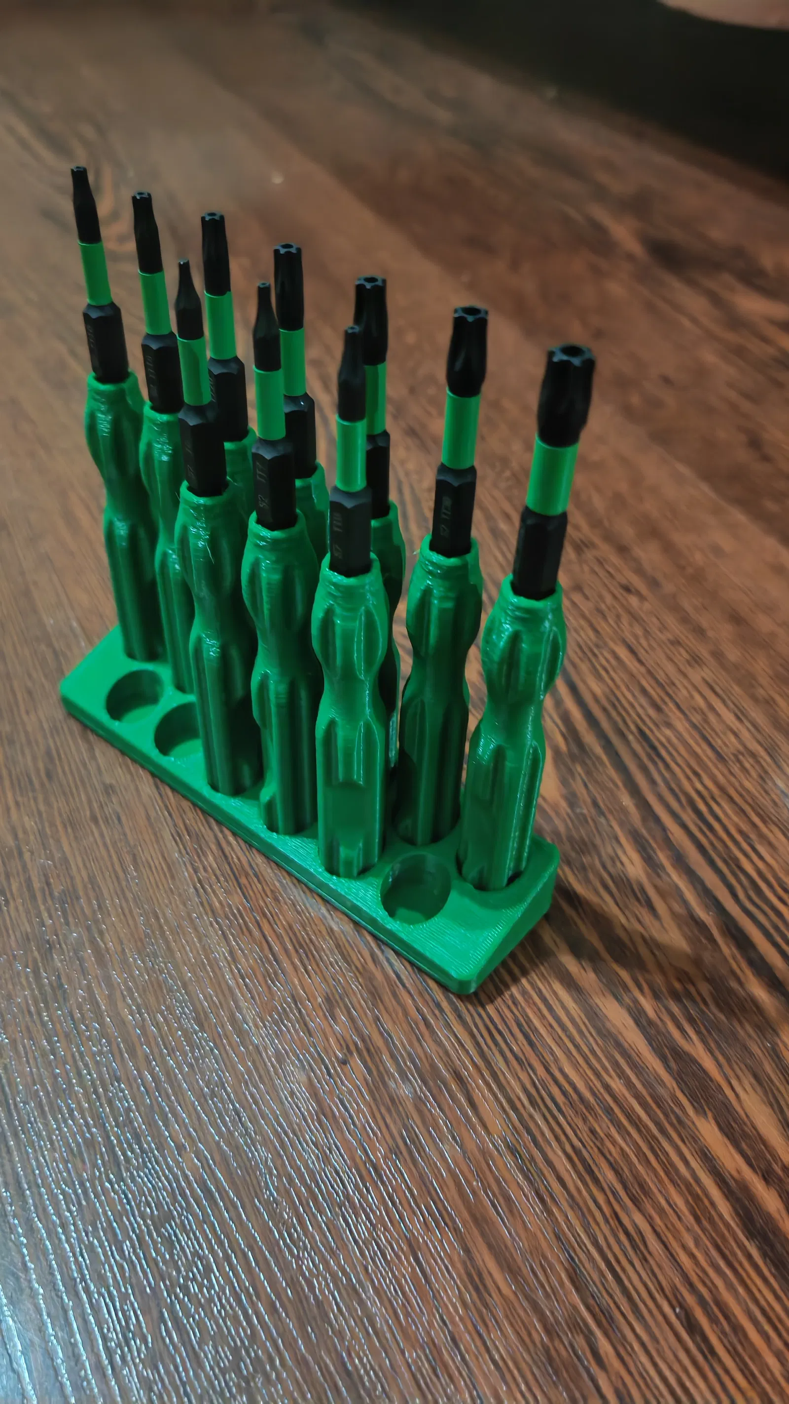 Giá đỡ tua vít gắn trên OpenGrid panel, thiết kế cho tua vít đường kính 14mm. Gắn bằng Multiboard Snaps. Gợi ý in ABS với nozzle 0.4, layer 0.2 và infill 10%.