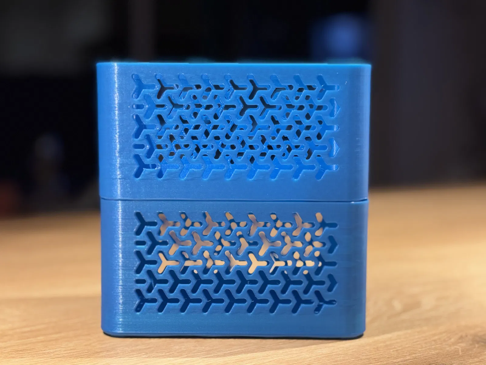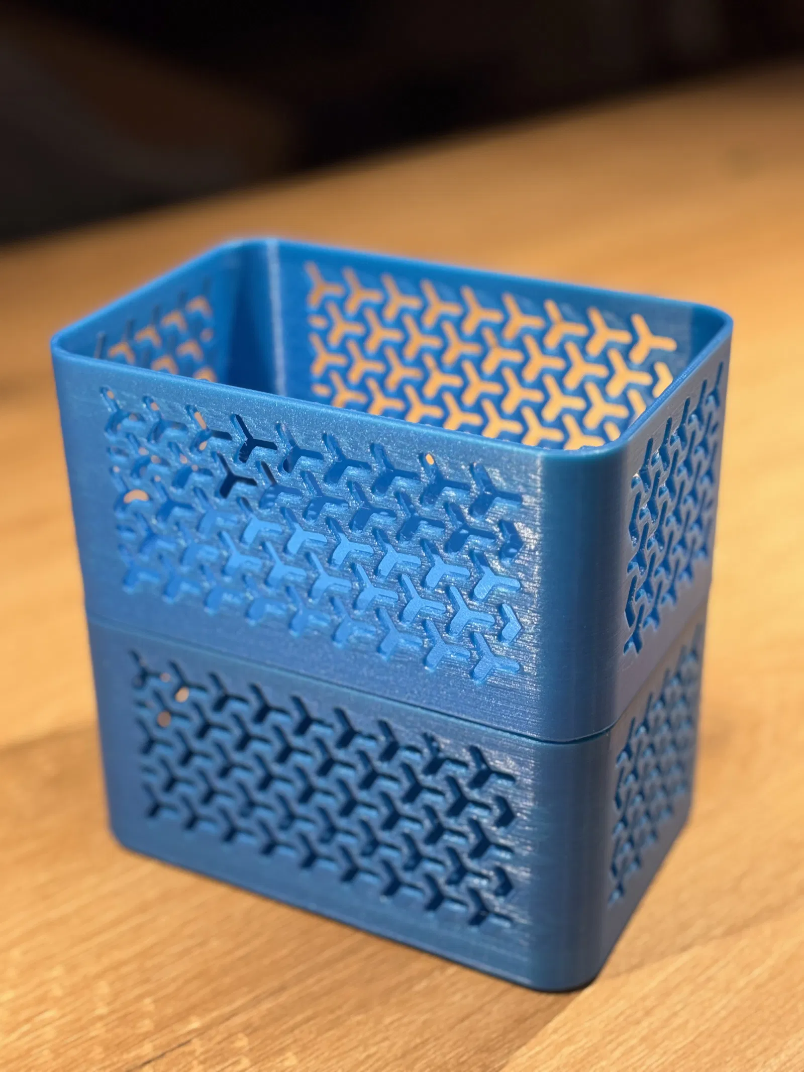 Organizer TriStar Stackable dạng module, footprint chuẩn và có cơ chế khóa dọc để xếp chồng chắc chắn. Thiết kế tường kết cấu cứng mà tiết kiệm vật liệu, dễ in với PLA/PETG/ASA.