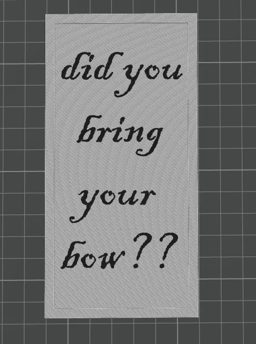 Bảng hiệu Archery nhỏ gọn, treo tường hay đặt đâu cũng được. Rất hợp làm quà vui cho người mê bắn cung hoặc dùng trang trí góc nhà của một archer. In đơn giản với layer height 0.14mm và infill 7%.