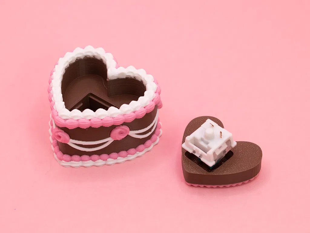 Mẫu Valentines Vintage Cake Fidget Clicker kiểu bánh kem vintage siêu đáng yêu, hợp làm quà Valentine. Có 2 top (có chữ “love you”/trống) và base có lỗ móc keychain. Tối ưu màu trong slicer để giảm thời gian và hao filament.