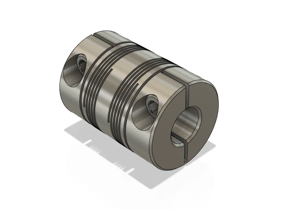 Mẫu 3D khớp nối kim loại dạng flexible và clamping, dùng để nối trục stepper (thường NEMA17, 5mm) với trục vít me leadscrew 8mm. Phù hợp để in 3D và lắp ráp cơ cấu truyền động.