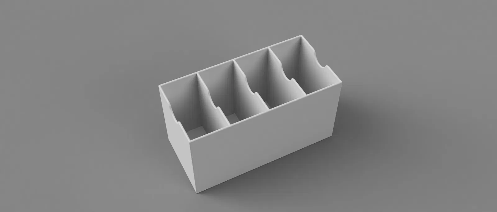 Khay đựng thẻ 4 ngăn nhỏ gọn cho các TCG như Magic: The Gathering, Pokémon, Yu-Gi-Oh!, Lorcana… Bề rộng trong 70mm, để vừa thẻ tiêu chuẩn cả khi dùng sleeve. Có rãnh ngón cái giúp lấy thẻ dễ.