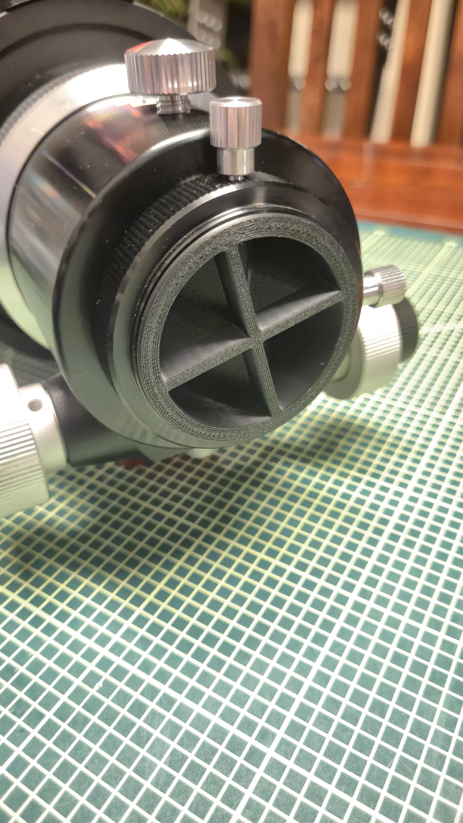 Mình đã thiết kế dustcap 2 inch và 1.25 inch cho ngàm kẹp eyepiece. Phần giữa hơi vát nhẹ nên khi kẹp sẽ không bị tuột ra. In được hoàn toàn không cần support.