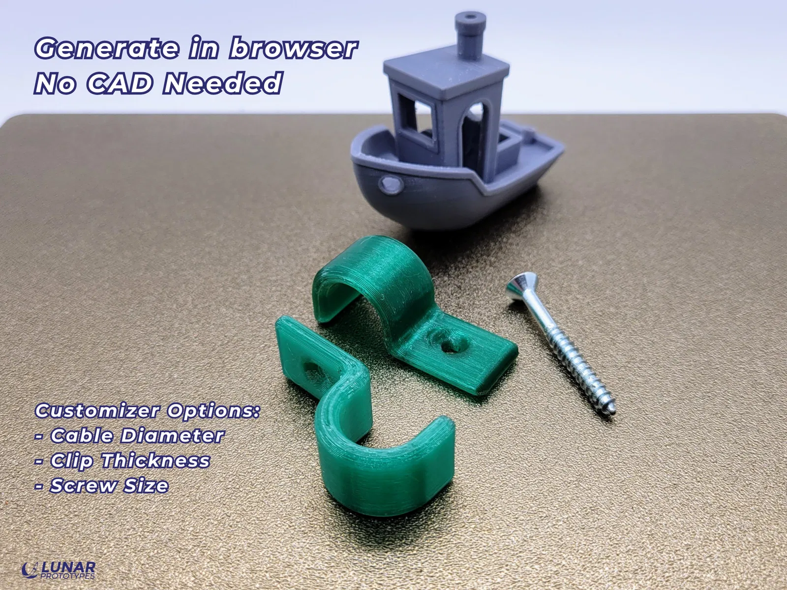 Tùy chỉnh trực tiếp trên website Lunar Prototypes. Không cần “hack” slicer hay dùng CAD.