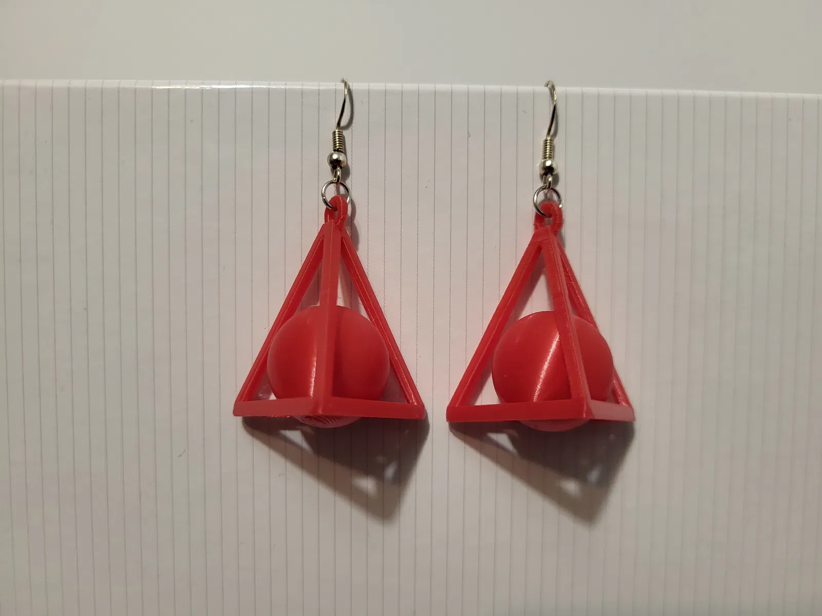 Bông tai - 062 là mẫu bông tai hình khối geometric với màu đỏ nổi bật, bên trong có quả cầu nằm gọn trong khung tam giác hiện đại. Phù hợp đeo hằng ngày hoặc làm điểm nhấn, dễ in bằng PLA/resin và gắn thêm móc.