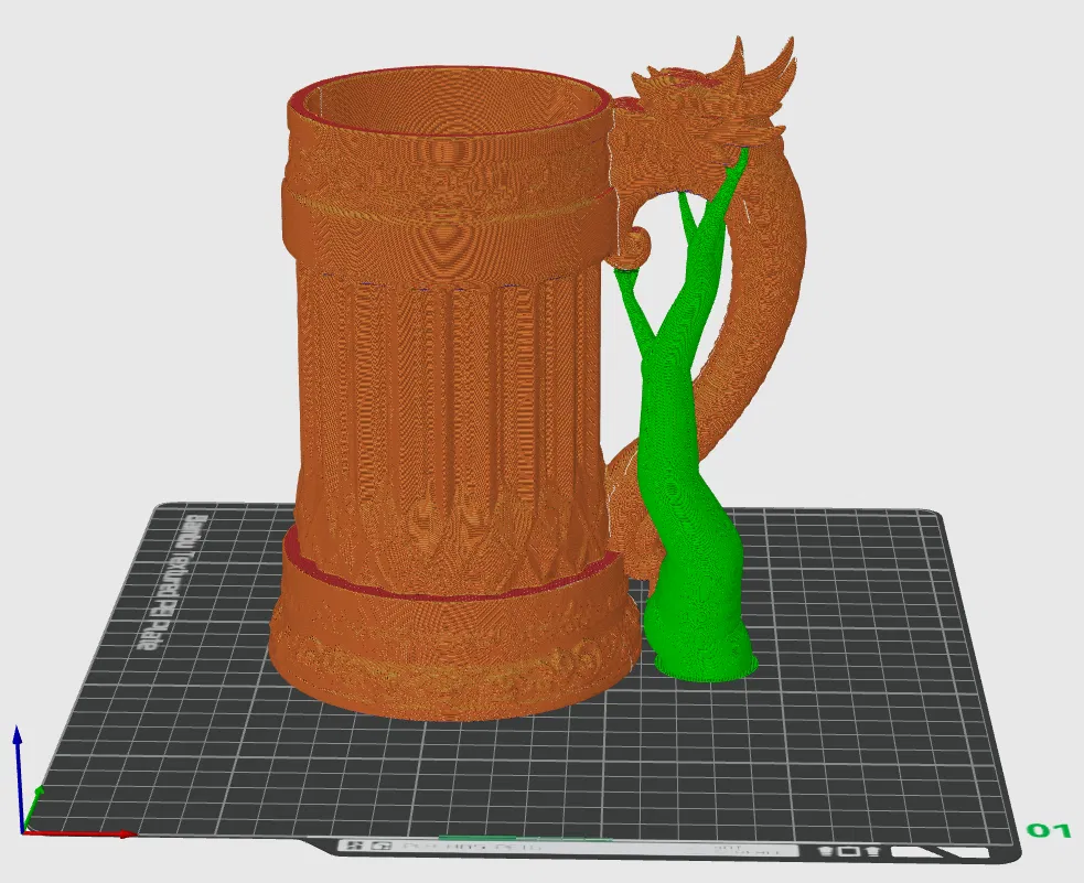 Mẫu này kết hợp dáng tankard cổ điển với nhiều chi tiết hoa văn trang trí, cùng tay cầm rồng được điêu khắc uốn từ vành miệng ly xuống tận phần đáy. Bề mặt thiết kế lên layer rất đẹp, in tốt kể cả trên máy FDM tiêu chuẩn.
