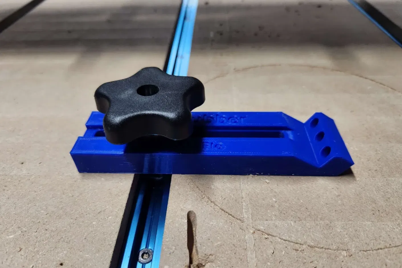 Đây là bản remix của phần đáy của toe clamp do DrDflo thiết kế tại đây. Phiên bản này cho phép tạo rãnh để luồn bu-lông 5/16" xuyên qua clamp, dùng với T-Track.