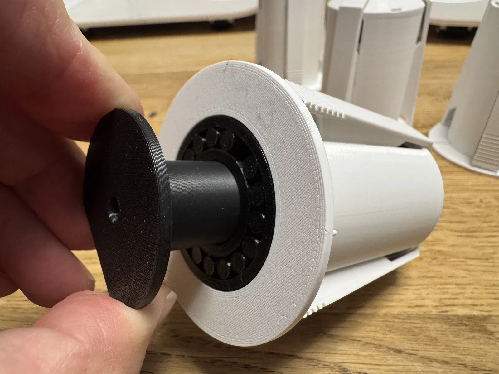 Mẫu này cũng dùng loại printable bearings, là một biến thể chỉnh sửa nhẹ từ mẫu của TechTom. In mấy cái bearing này trên U1 rất ngon, mình thậm chí không cần “break in” mà nó vẫn lăn mượt.