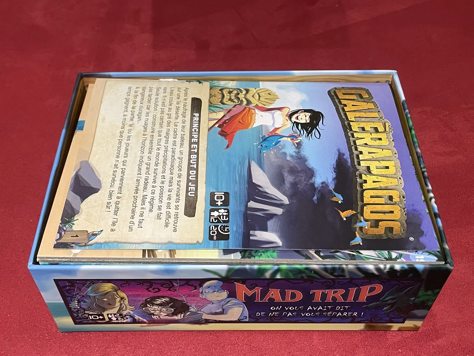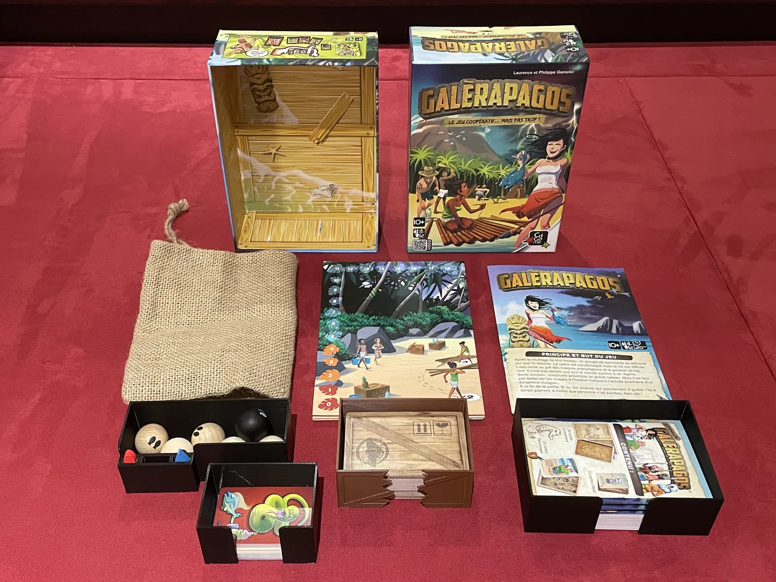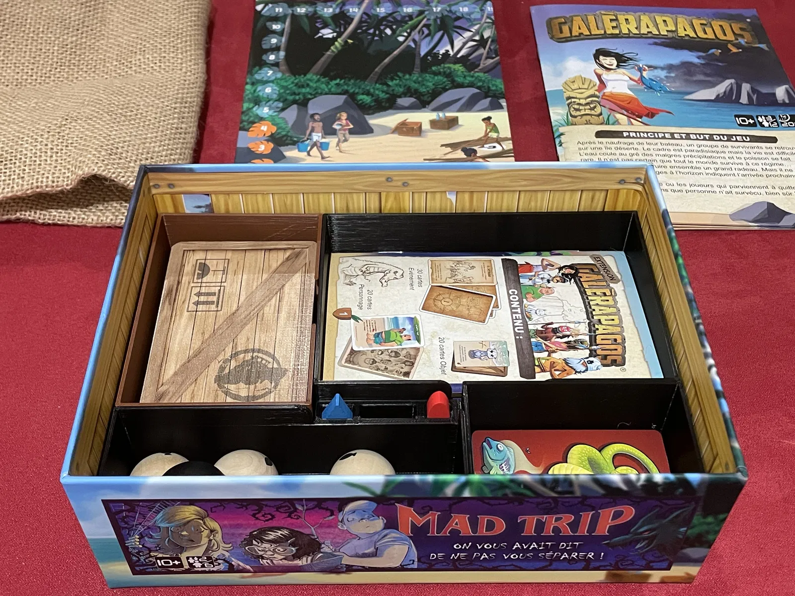 Insert cho Galèrapagos / Hellapagos và các extension, chứa được bài bọc sleeve standard. Bỏ khay bìa gốc, thay bằng khay bài cỡ vừa kiểu “thùng vỡ”. In không cần supports; khuyên dùng mouse ears để chống cong vênh.