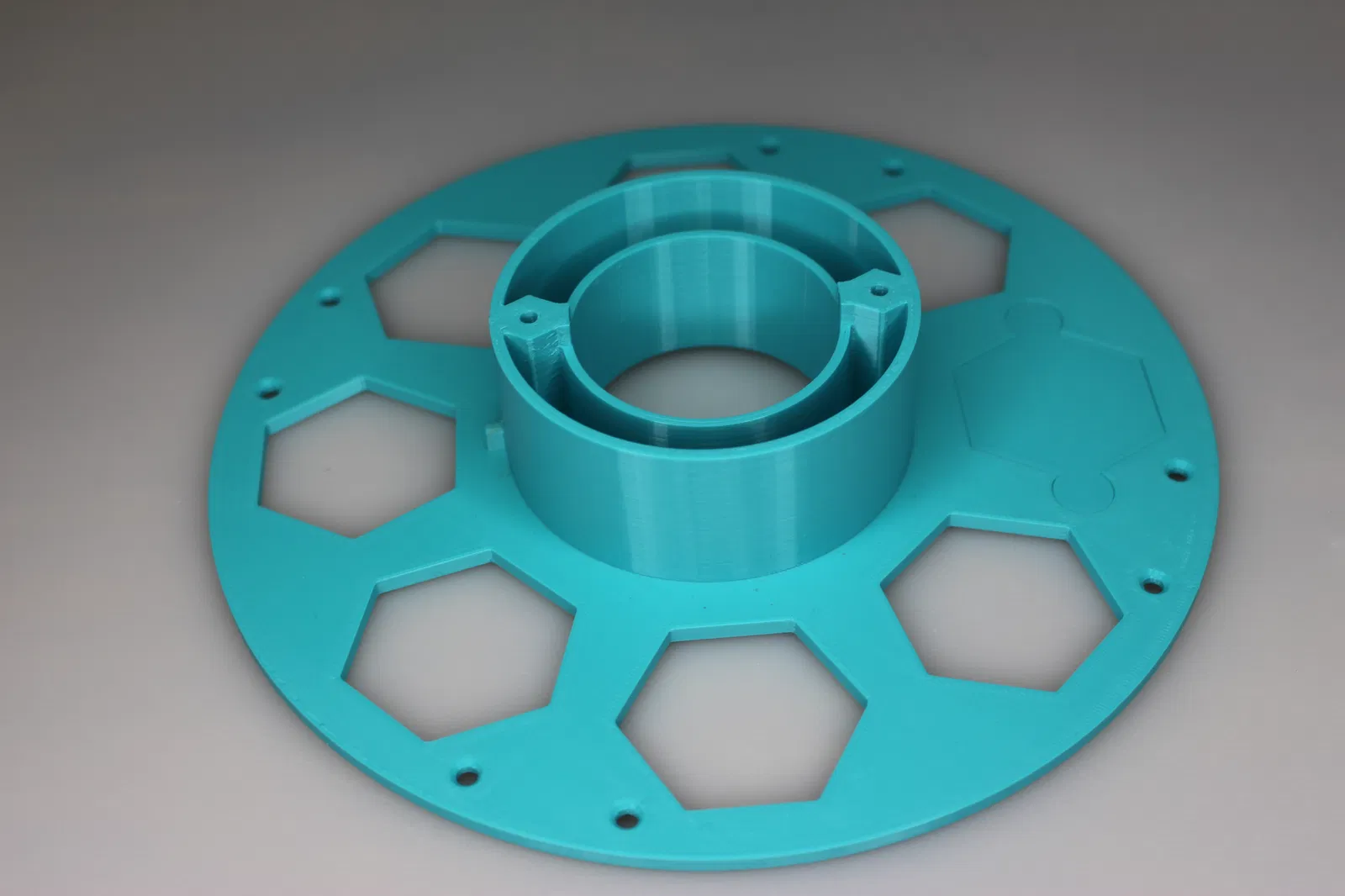 Trước khi in bản lớn có nhúng ê-cu vào mặt spool, mình cũng kèm một mẫu test print nhỏ dùng ~1g filament để test dung sai với phần cứng (hardware) của bạn. In bằng đúng loại filament bạn dự định dùng. Mình thấy dùng một con bolt làm “dụng cụ” để ấn vào bản in sẽ dễ hơn.