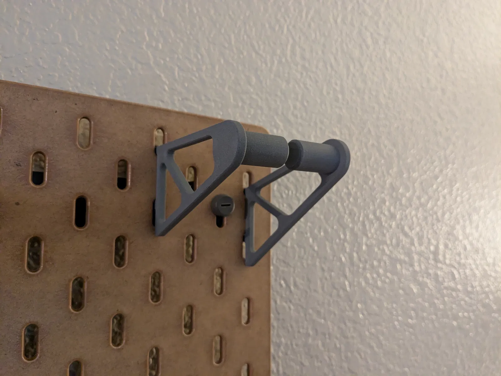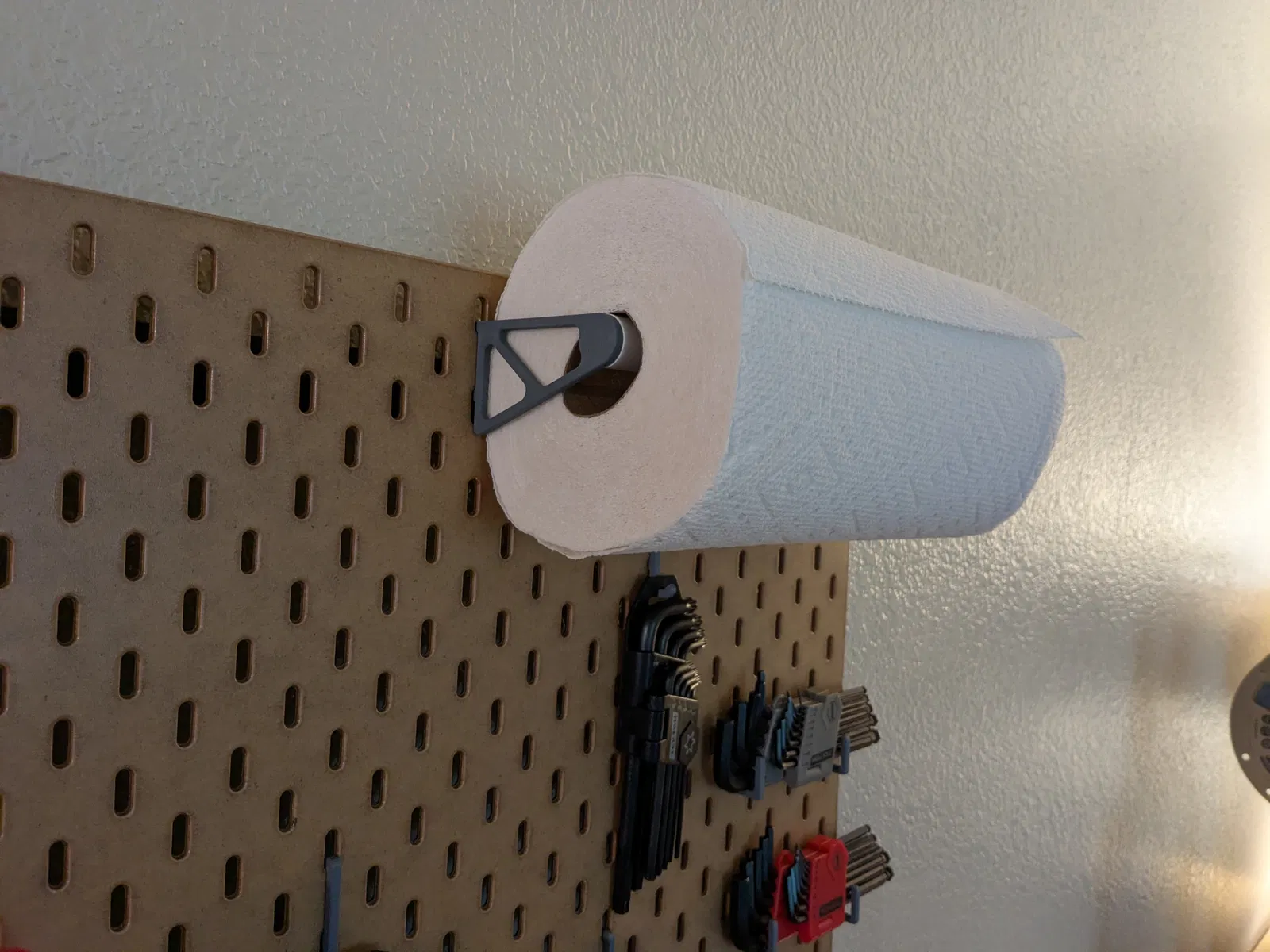 Một bên tay đỡ được offset theo phương dọc 20mm để gắn xuống một hàng thấp hơn trên bảng pegboard Skadis (cuộn paper towel của mình rộng 28 cm). Nếu bạn muốn gắn cả hai tay đỡ cùng một hàng, bạn có thể dùng chức năng "mirror" trong slicer.