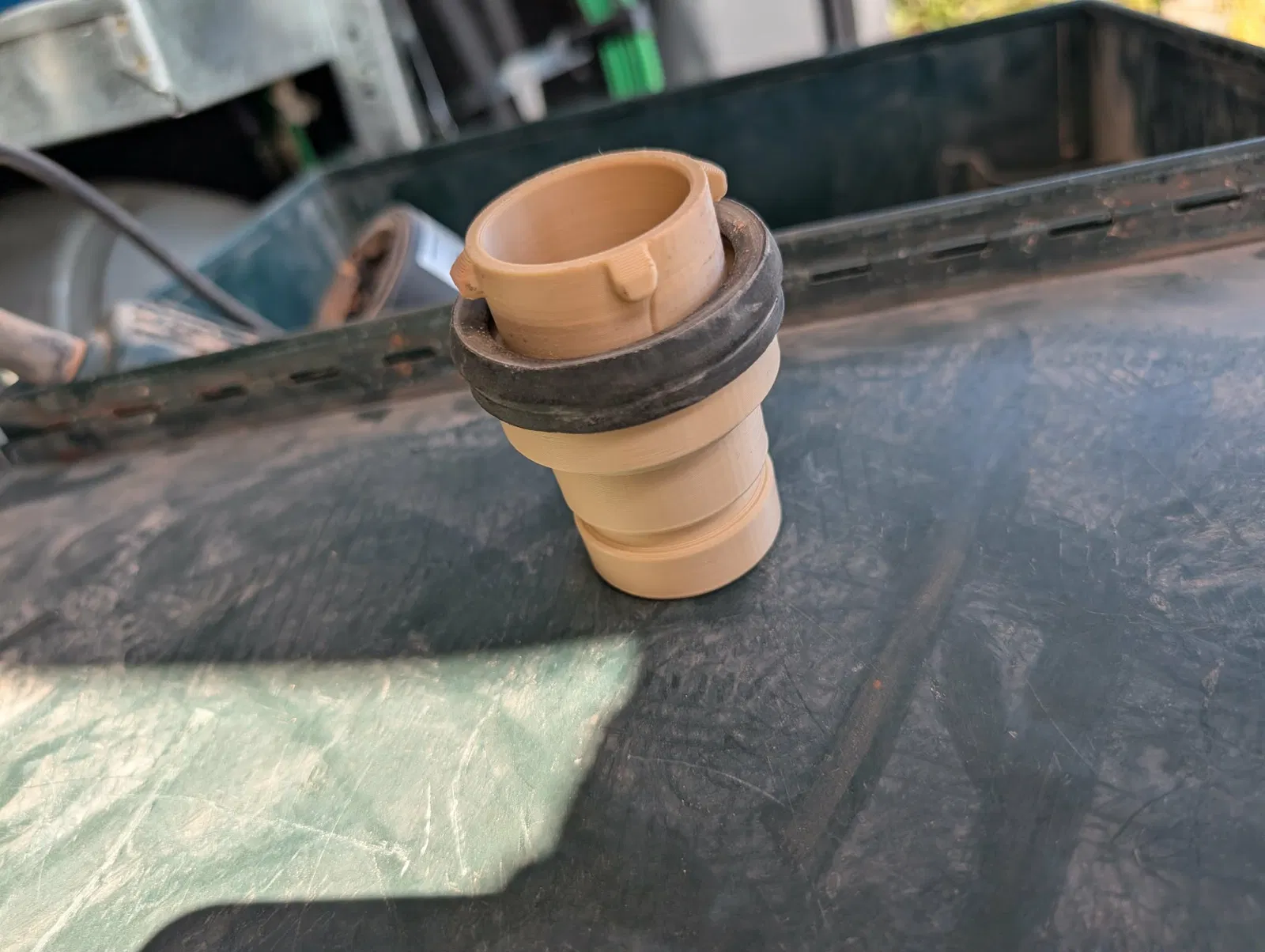 Adapter dùng để nối trực tiếp từ Matabo chaser sang DeWalt Dust Extractor. Thiết kế có tái sử dụng seal zin của Matabo. Mẫu được in trên Anycubic Cobra 3 với PLA, layer 0.2.
