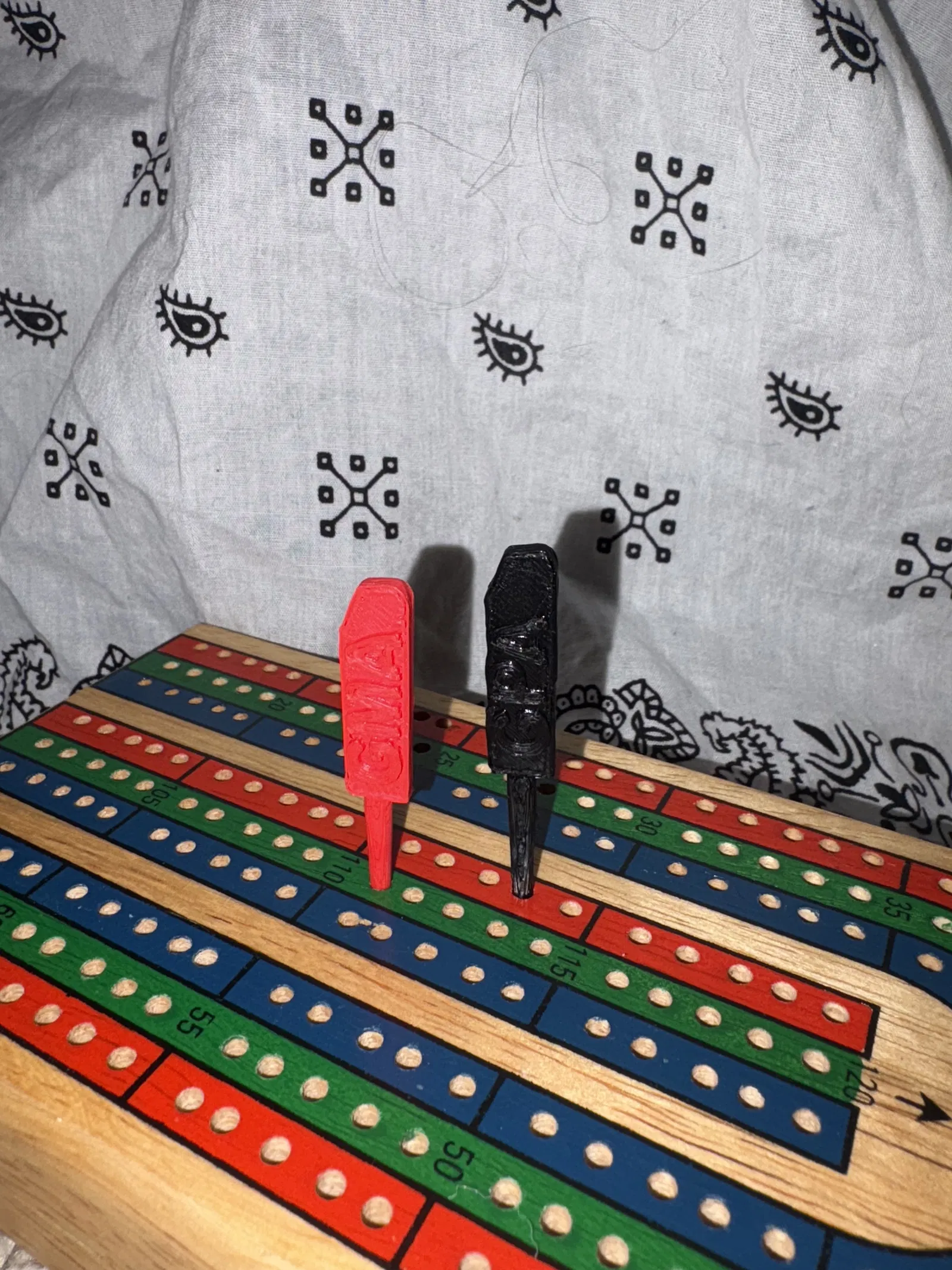 Bộ chốt (peg) cribbage tùy biến khắc tên “Bà” và “Ông”, thiết kế đơn giản, dễ in. Tác giả in với infill 100% để chốt cứng cáp và bền hơn, phù hợp làm quà tặng cho ông bà.