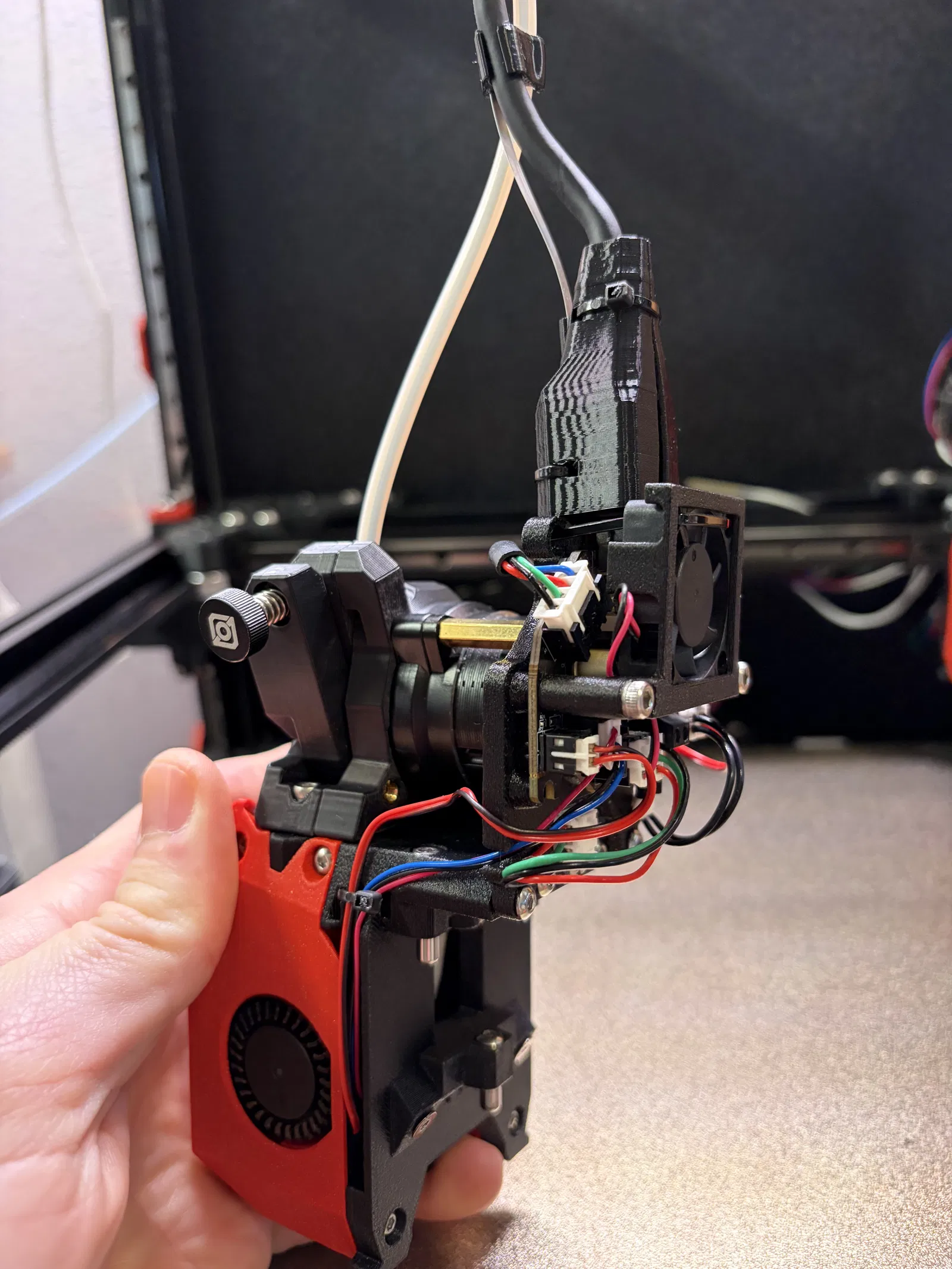 Mình đã bỏ các lỗ dư, đồng thời dời vị trí lỗ bắt extruder để canh đúng theo góc của extruder Anthead WWG2 bản official.