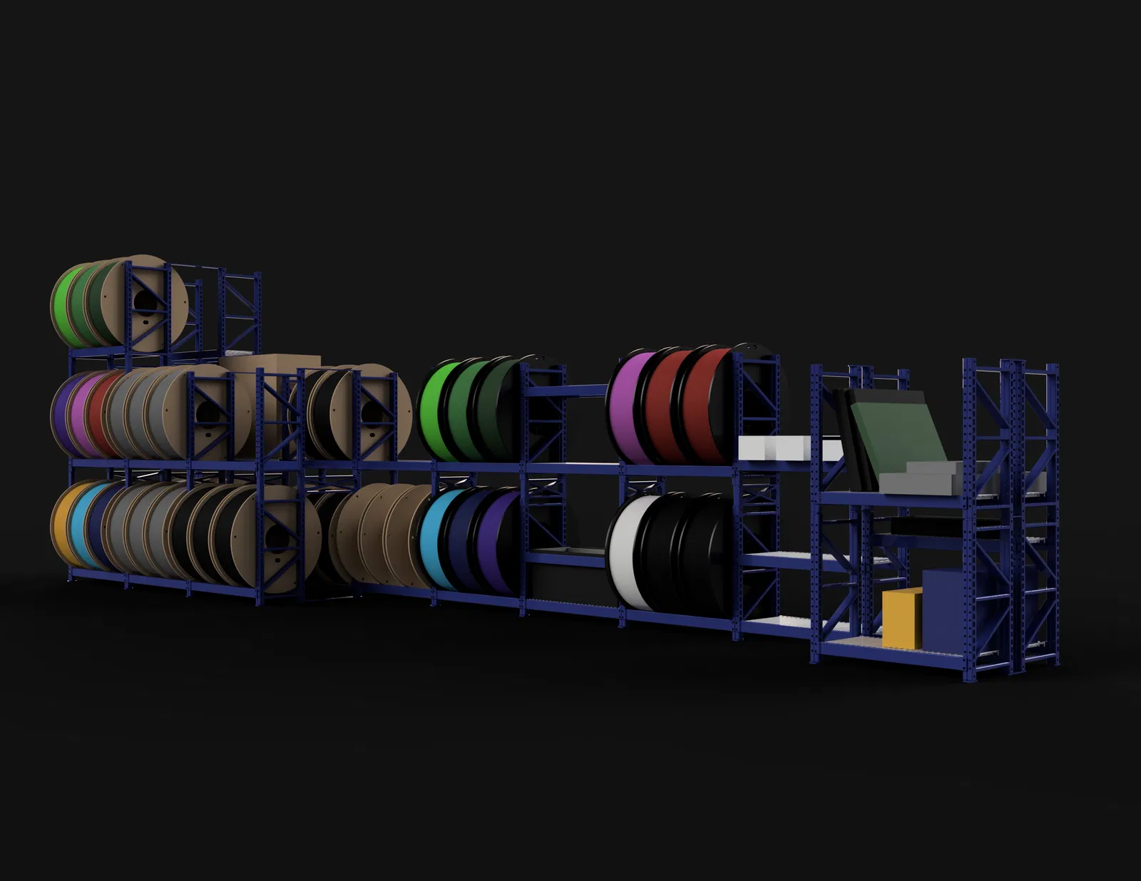 Lấy cảm hứng từ một kệ để post-it note mình thấy trên reddit. Mình muốn làm một hệ kệ racking modular giống kiểu kệ kho thật, có chi tiết cố gắng mô phỏng đồ thật; nhưng vẫn in được.