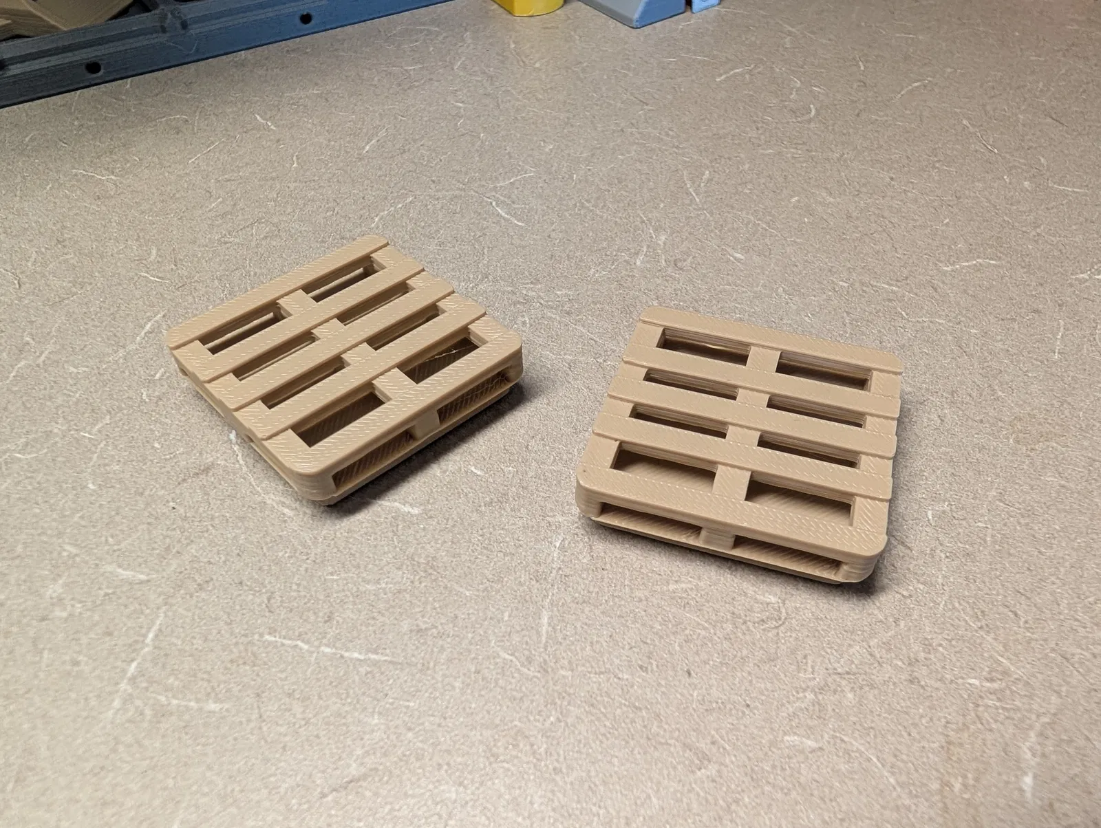 Mình thiết kế món này ban đầu để mấy kệ pallet cỡ để bàn trông chân thật hơn. Dù bạn muốn “cất” chiếc benchy yêu thích, hay đơn giản muốn baseplate Gridfinity nhìn như một bến hàng thu nhỏ, model này khớp chuẩn footprint 42mm.