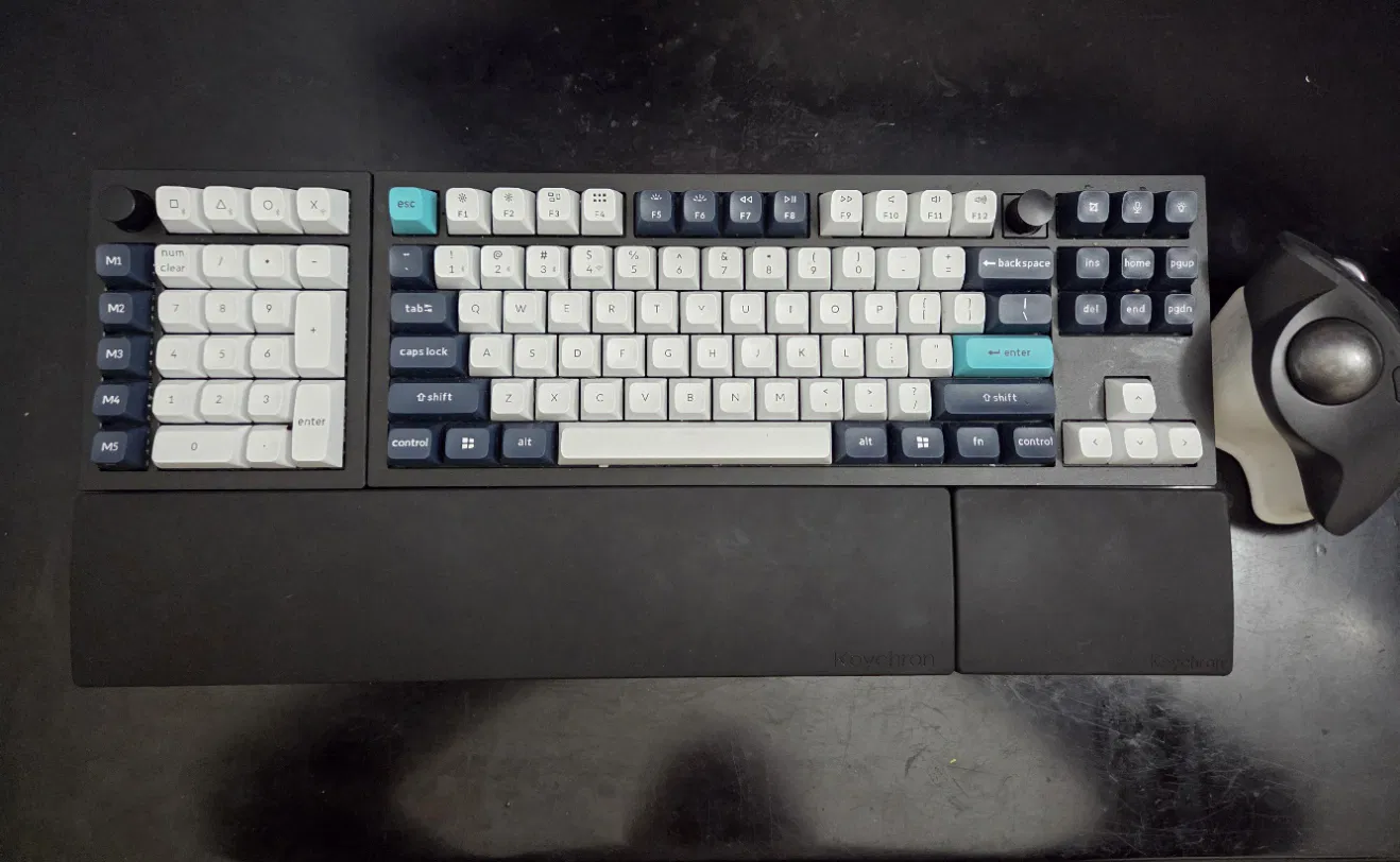 Mình thuận tay trái và hay để cụm numpad ở bên trái bàn phím. Chắc cũng ít ai thích kiểu này, nhưng vậy cũng được. Gần đây mình quyết định nâng cấp lên bộ Keychron mechanical keyboard, nên chọn Keychron Q3 Max QMK đi cùng Q0 Max QMK để hai món có thể đặt sát nhau ở bên trái.