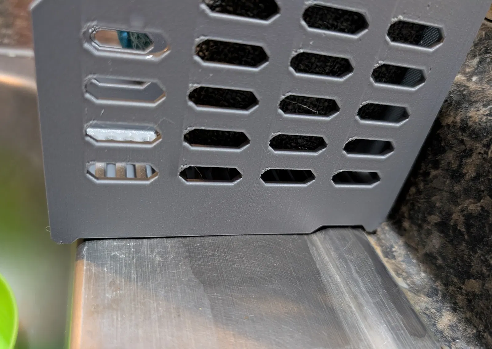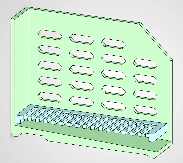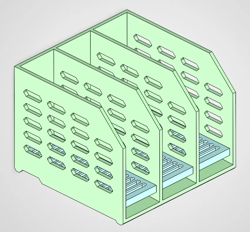 Khay đựng miếng rửa chén có đáy dốc giúp thoát nước nhanh, phù hợp bồn rửa kim loại có gờ và cả bồn phẳng. Vỉ thoát nước tháo rời dễ vệ sinh. Có kèm file Solidworks parametric để bạn tùy chỉnh.