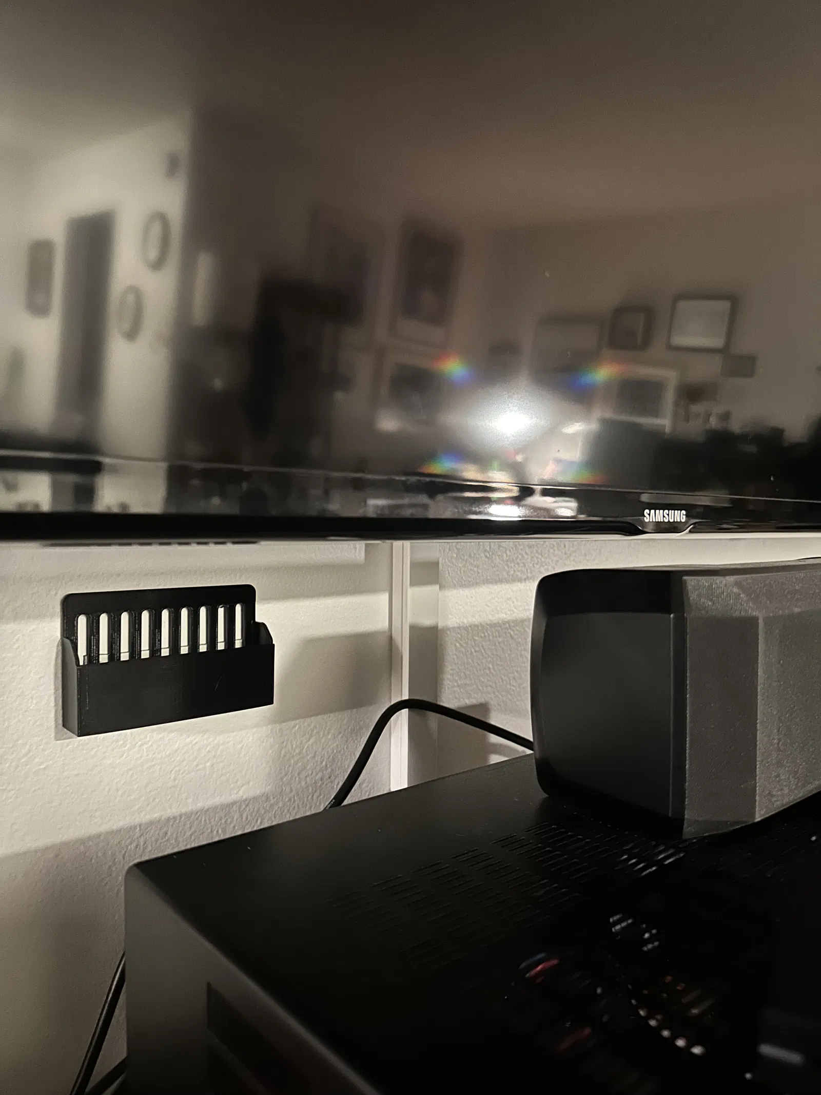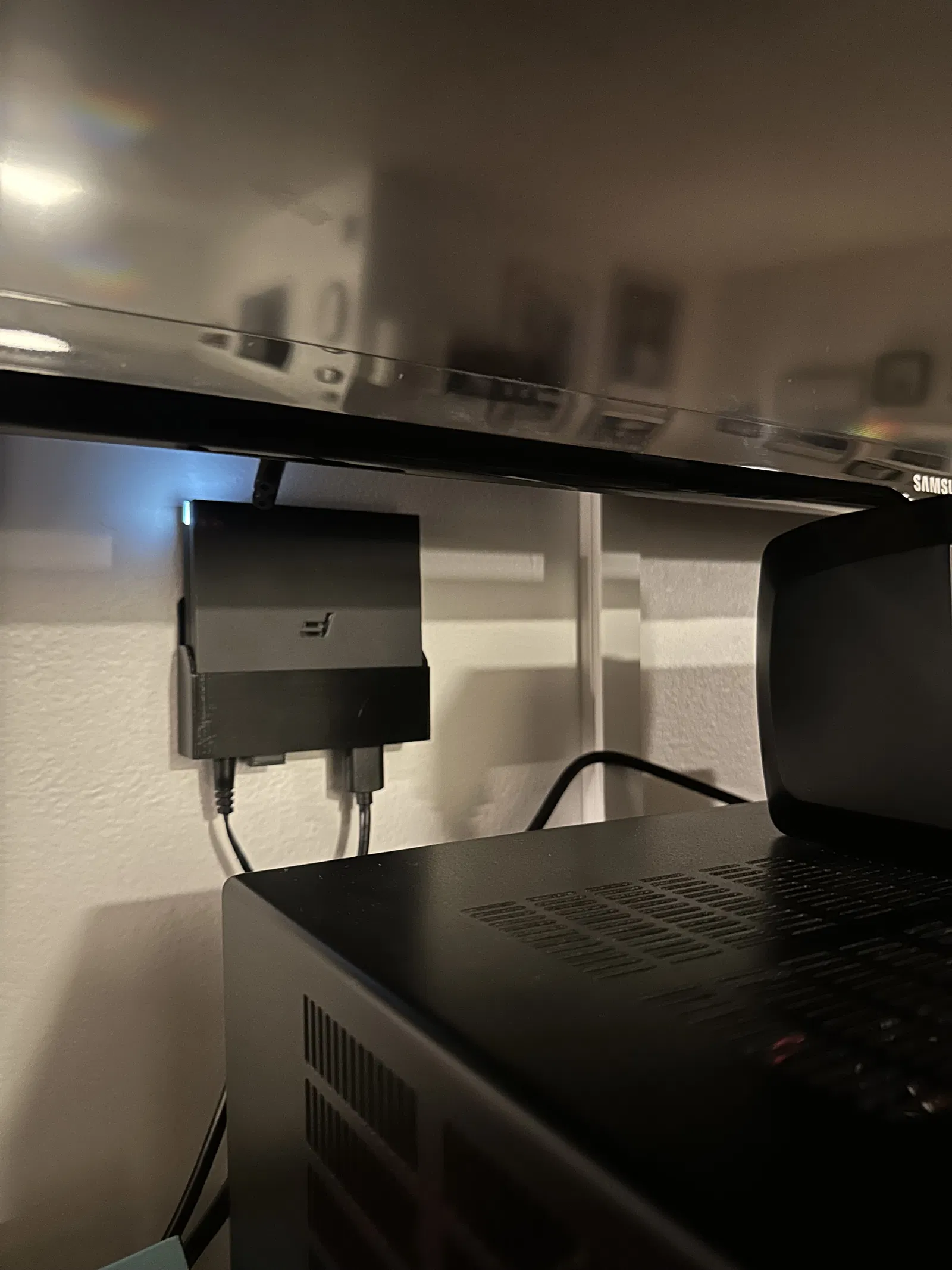 Formuler Z10 Holder dạng slide-in giúp dời thiết bị từ kệ TV lên tường, treo bằng băng keo 2 mặt không cần vít, và có thể tháo ra nhanh để mang theo qua TV khác mà không làm hư tường.