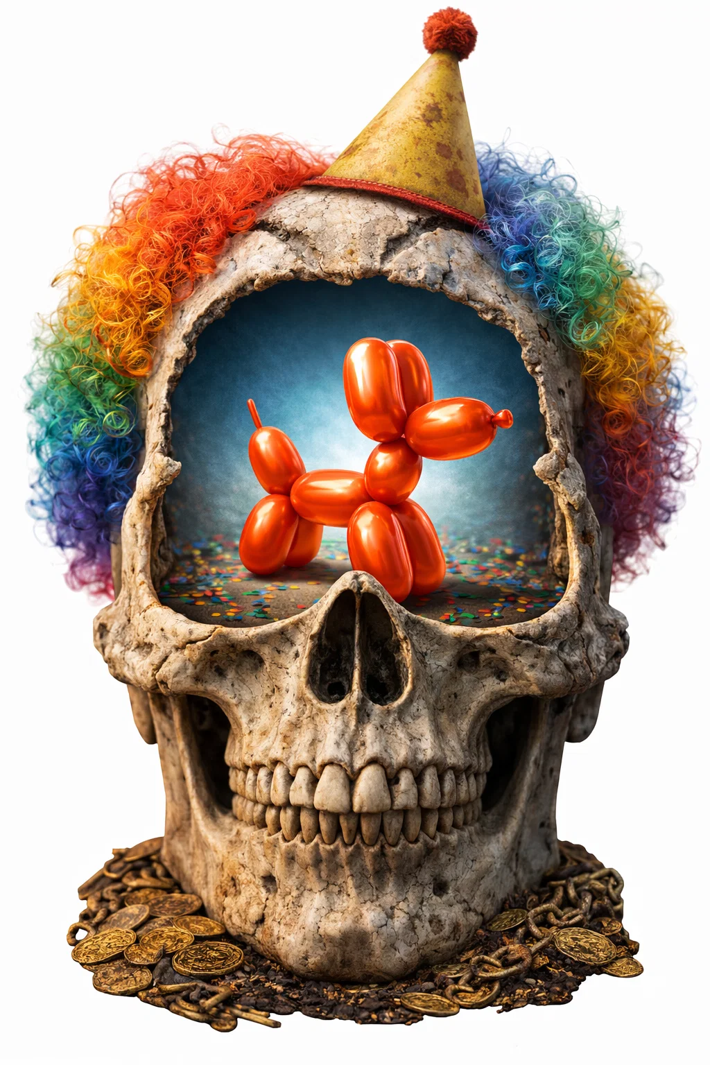 Circus Macabre là mẫu mô hình chú hề rạp xiếc mang phong cách u tối, với chi tiết độc đáo: một chú chó bóng bay nằm trong hộp sọ như bộ não. Hợp để trưng bày hoặc in 3D theo chủ đề skull, clown, circus.