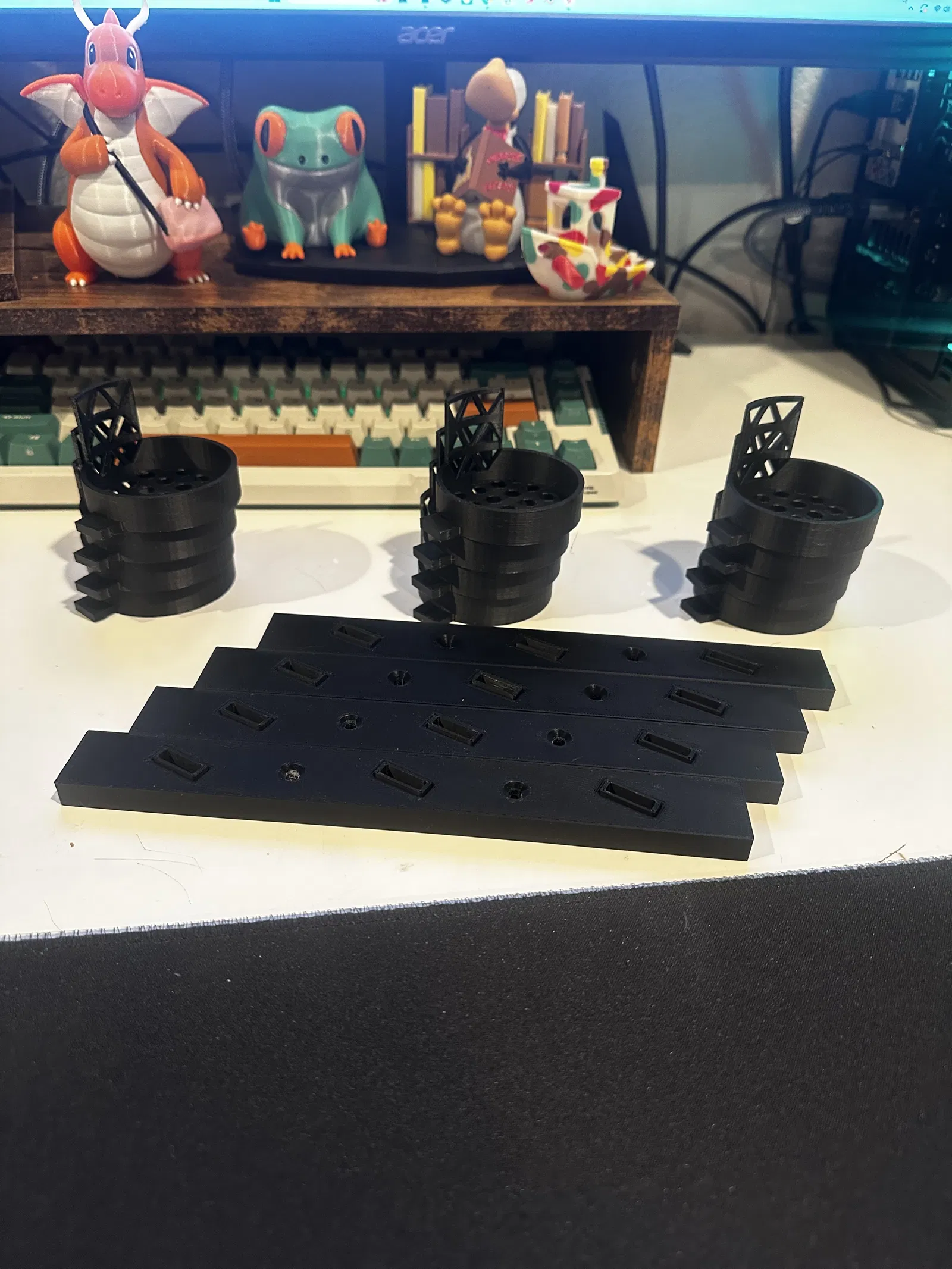 Mỗi lon sẽ cần 1 CanSlip (ngàm/holder) riêng và 1 BlockClip (kẹp gắn/mounting clip). Ngoài ra, các WallBase mỗi cái giữ được 3 lon (bạn CÓ THỂ mix lon lớn và lon nhỏ chung với nhau mà không vấn đề gì, dù nhìn có thể hơi lệch một chút). Mình cũng thiết kế tất cả theo kiểu press fit, trượt vào/ra khá mượt, nhưng mình có dán keo các Block vào WallBase để giúp CanSlip trượt ra/vào ổn định hơn, không bị vướng.
