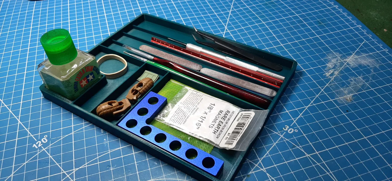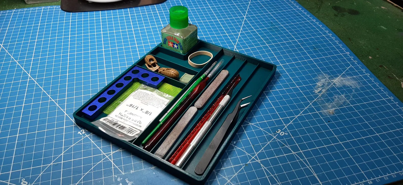 Khay đựng keo Tamiya và các dụng cụ làm mô hình, in 1 lần (single print) kích thước 256x256. Thiết kế đơn giản giúp đồ nghề để gọn, hạn chế bị lăn rơi khi đang làm. Không cần supports.