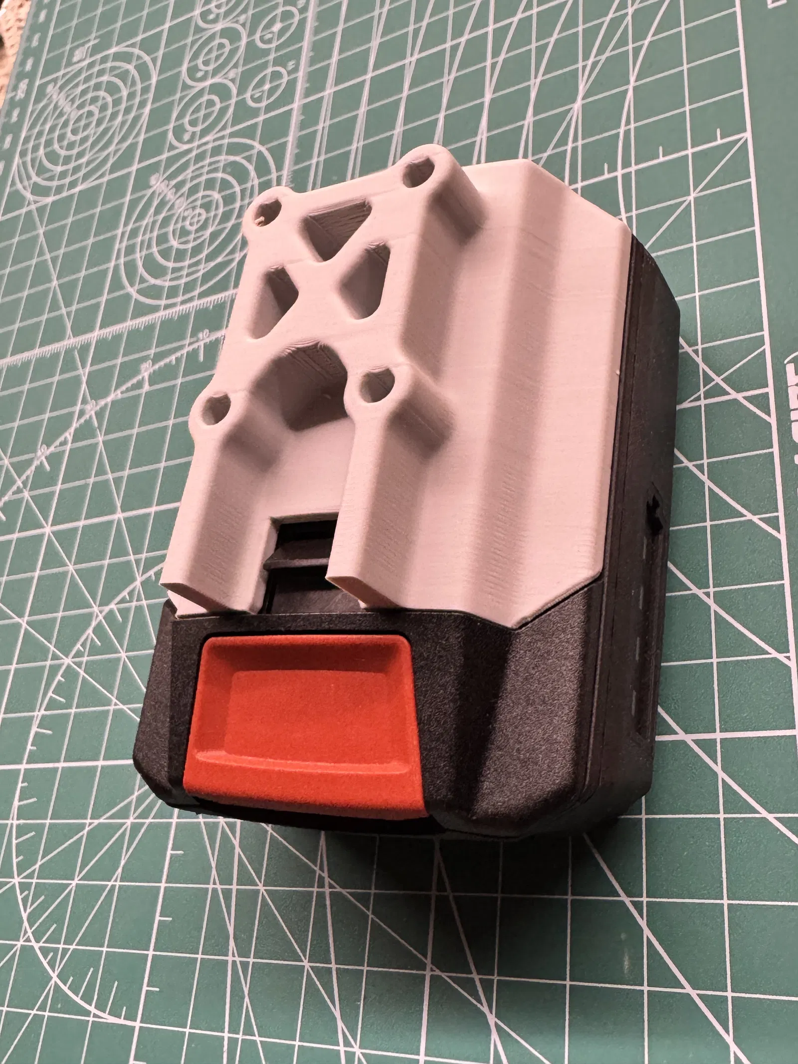 Giá đỡ pin Hilti B12/30, gồm 2 phiên bản: một dùng vít xuyên 4–4.5 mm, một dùng vít nhựa 3 mm. Khuyến nghị in PLA layer 0.2, infill 15%, in dựng đứng và có support. Lưu ý: không có khóa cài pin.