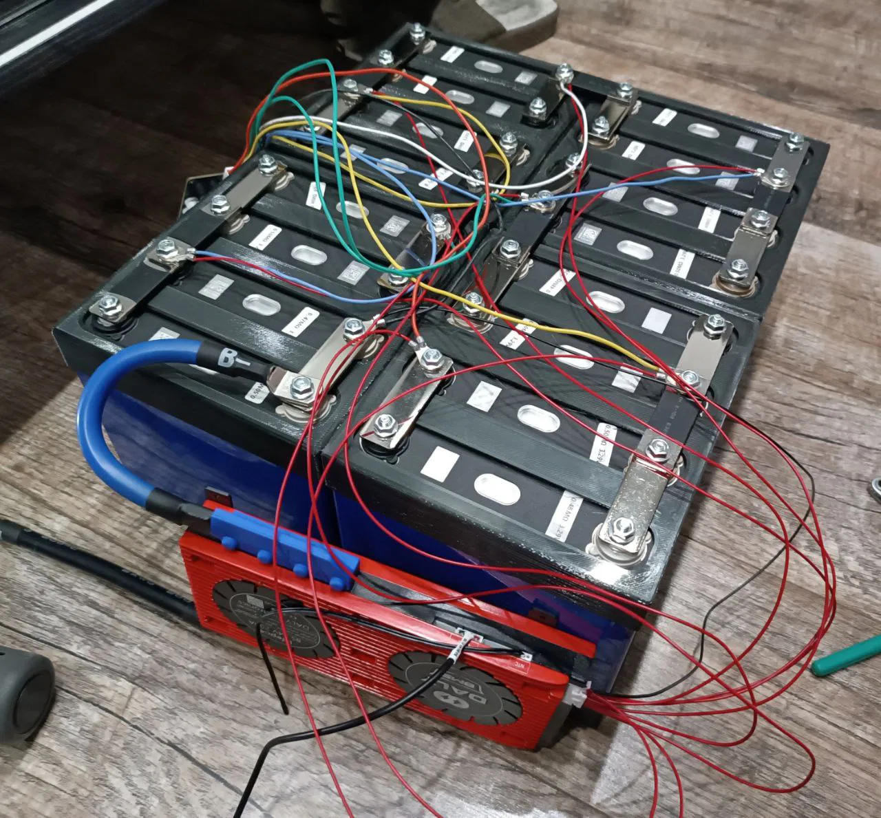 Vị trí BMS: Cố định BMS và đi dây gọn gàng/cẩn thận như trong cụm lắp 16 pin, để lâu dài không bị rung tuột hay cọ gây chập.