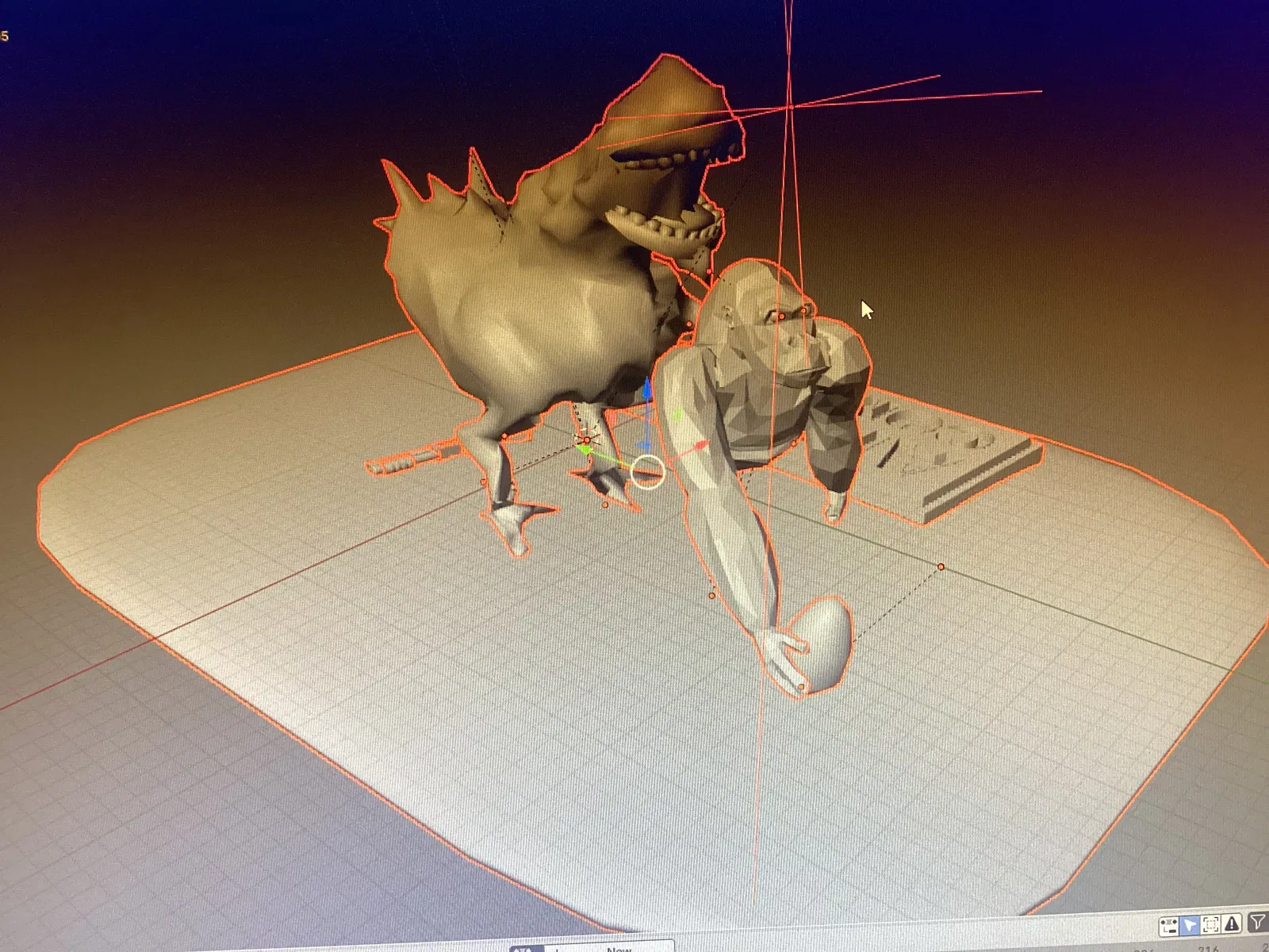 Mô hình “gorilla vs chicken” – Gorilla đấu với Chicken: ai sẽ thắng đây? Tác giả chia sẻ là làm cái này tốn rất nhiều thời gian. Phù hợp để in 3D trưng bày hoặc sưu tầm.