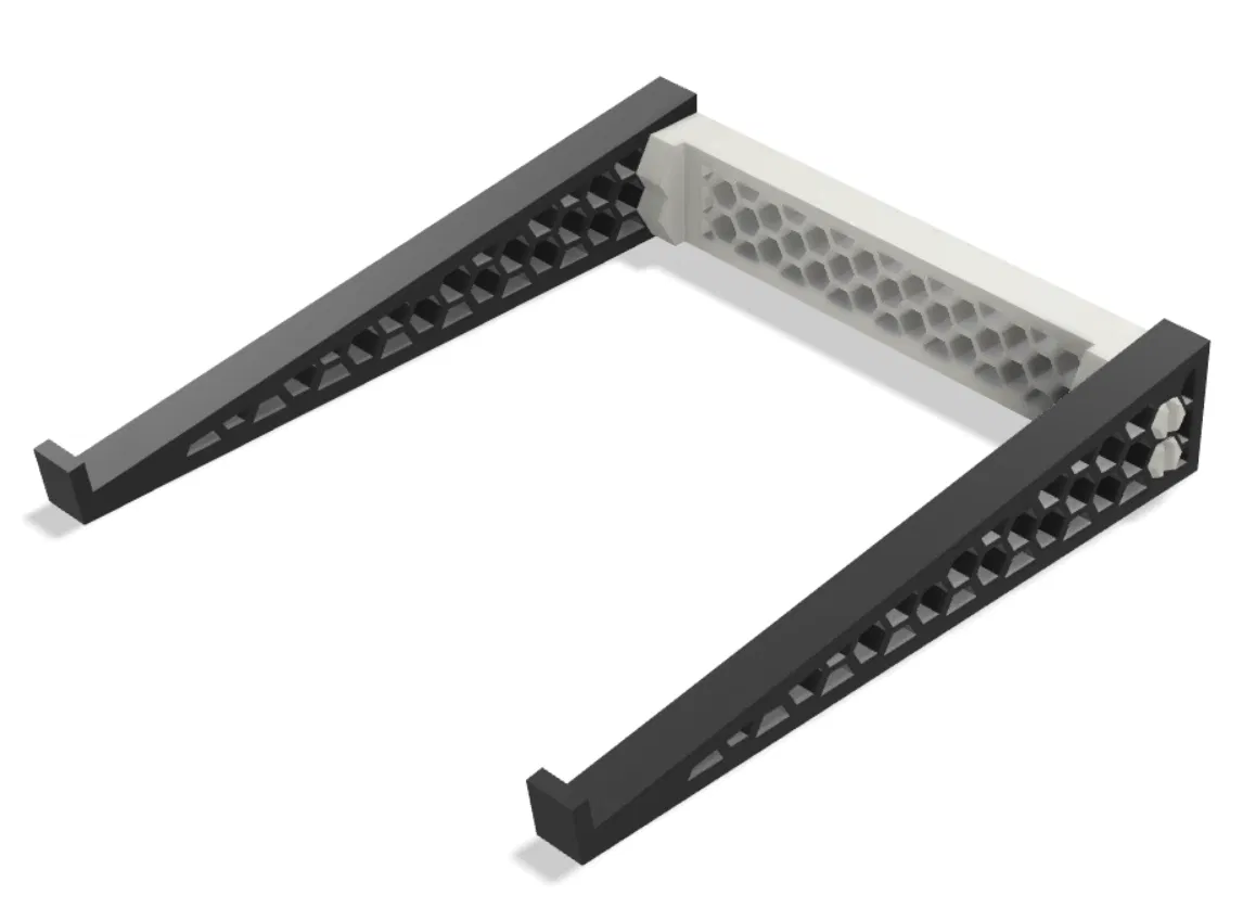 Giá đỡ laptop modular có thể mở rộng. Có sẵn chân đế offset để đặt bàn và adapter kiểu staple để ghép 2+ laptop (hoặc dùng 1 cái làm base). Hỗ trợ tải file STL để in 3D.