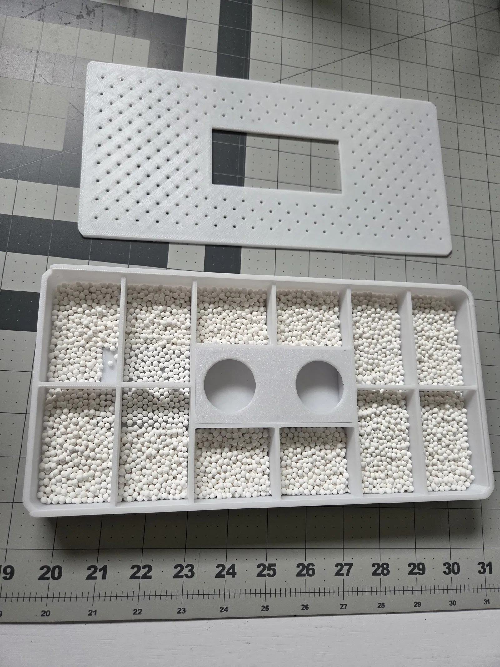 Đây là một khay đựng desiccant vừa khít dưới đáy của thùng đạn 50 cal (50 cal ammo can). Mình dùng nó để cất dây hàn (welding wire) trong môi trường có độ ẩm thấp.
