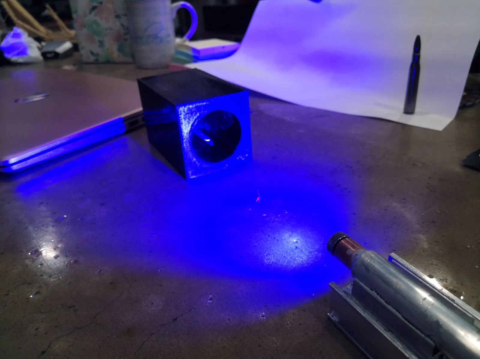 Đây là một cái Laser Beam Dump đơn giản mình làm! Bản này fully 3D printed, nên không cần thêm linh kiện hay lắp ráp gì hết. Cái laser xanh 5W trong hình làm cho beam dump bốc khói. Một phần là do mình dùng PETG cho bản prototype và nó chỉ là bản scale 75% so với beam dump thực.