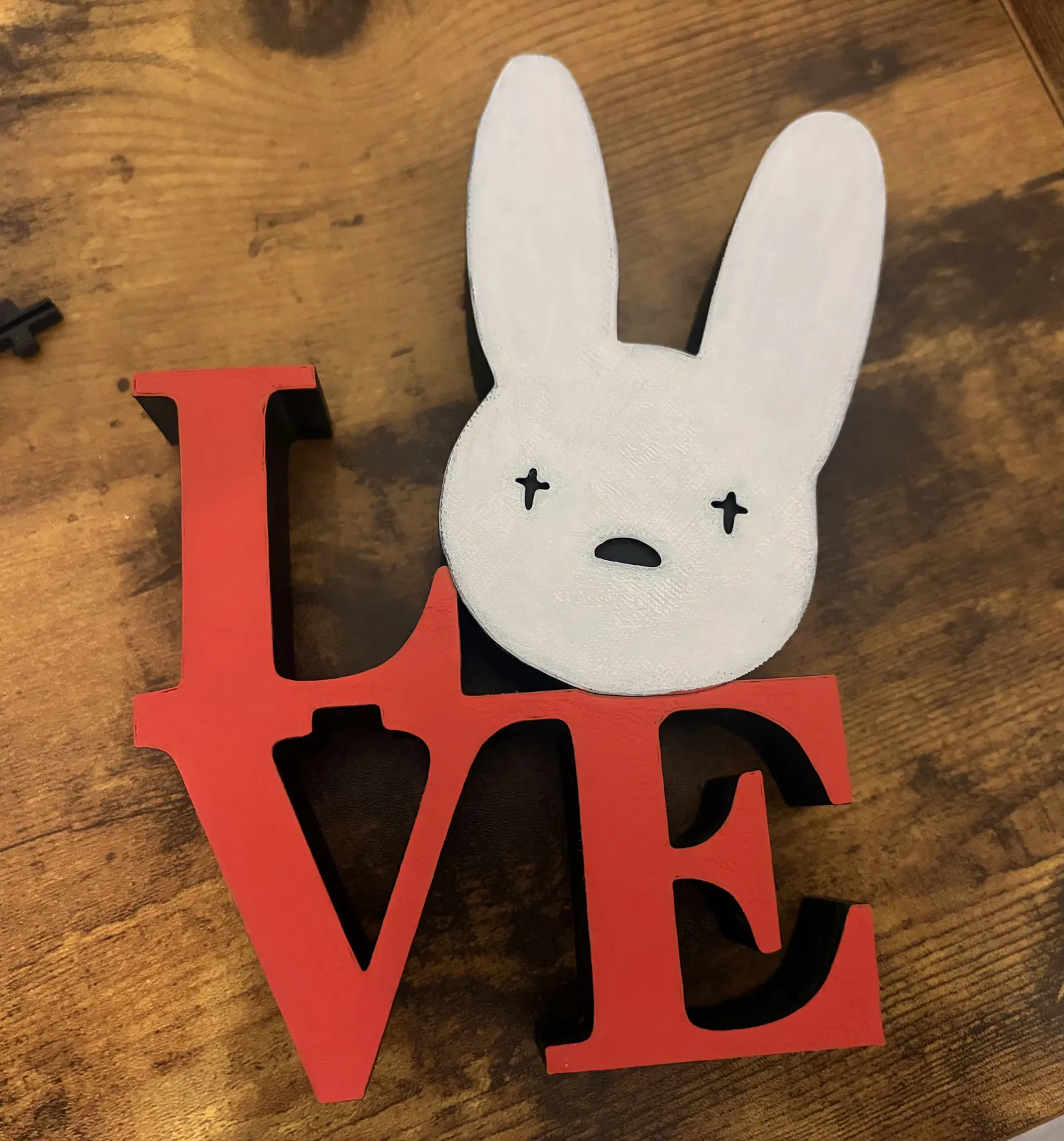 Bản mash-up giữa logo Bad Bunny và tác phẩm điêu khắc "Love" của Robert Indiana. Mẫu này in đơn giản thôi. Bạn để mẫu nằm phẳng khi in để khỏi cần supports.
