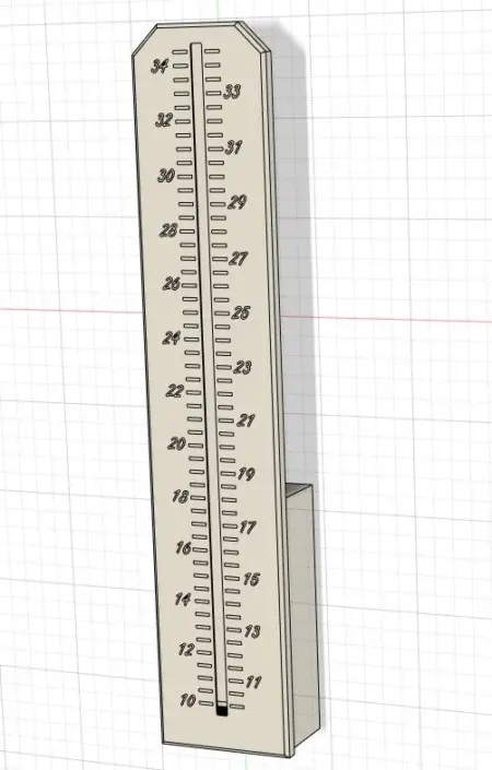 Đầu tiên mình đo dải LED (WS218B 144 LED/m) để lấy đúng khoảng cách giữa các LED. Sau đó mình chèn các con số và vạch chia theo bước 0.5°C. Mình tạo các phần khoét để có thể in nhiều màu. Vì vậy mình tạo các body riêng và gom lại thành một group, để có thể import lại như một model trong slicer.