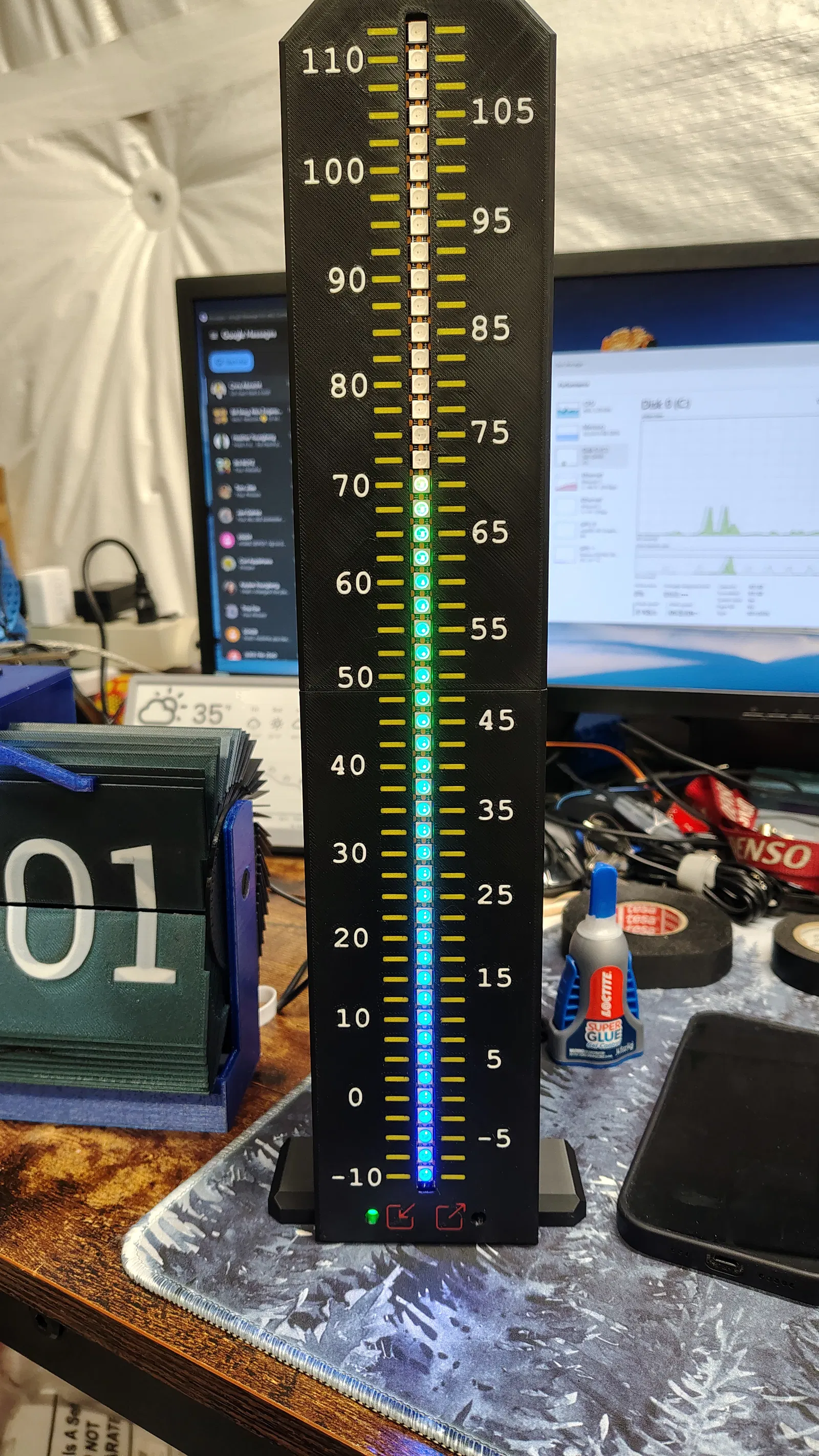 Mẫu Nhiệt kế (Thermometer) dựa trên thiết kế của Mazis92, đã chỉnh lại cách đánh số thang đo để hiển thị Fahrenheit đúng hơn. Có đính kèm project .ino và ảnh xem trước giao diện web.