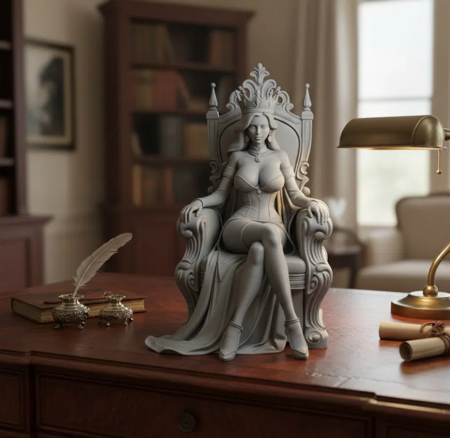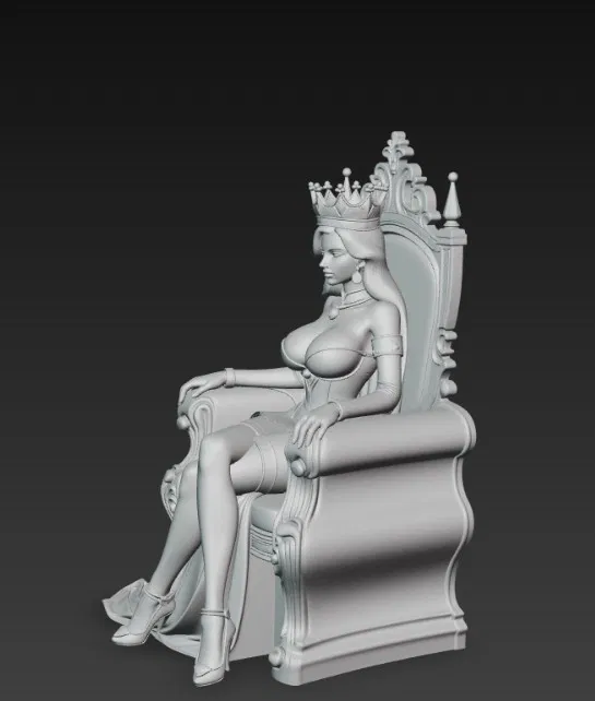 Mẫu tượng nữ hoàng đang ngồi trên ngai vàng, phù hợp để in 3D làm figurine trưng bày theo chủ đề hoàng gia/kingdom hoặc game. Thích hợp cho sưu tầm, trang trí bàn làm việc hay làm quà tặng.