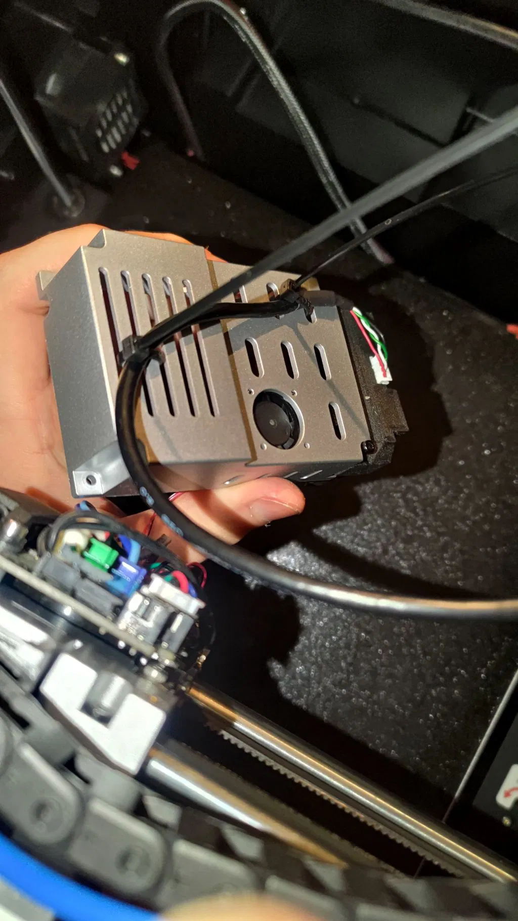 Nên in bằng vật liệu chịu nhiệt. PLA gần như sẽ bị cong vênh, ABS và ASA có thể chịu được. Mình khuyên dùng PAHT-CF (chịu được 190°C), PP-GF30 hoặc PSU để chắc chắn không bị cong vênh hay chảy. Mình in bằng PAHT-CF.