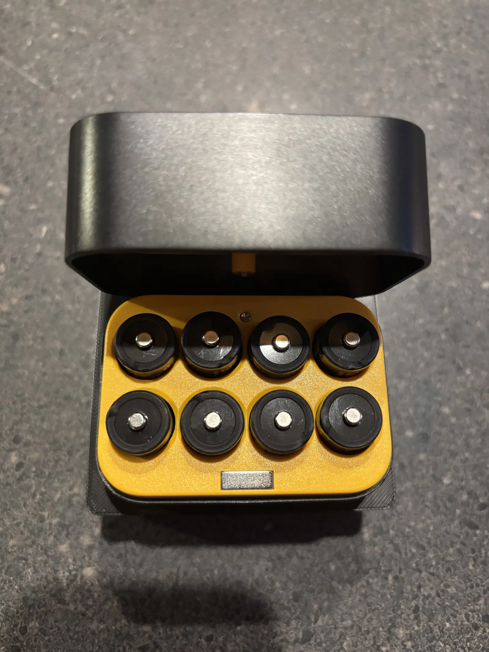 Thiết kế để cất bộ sạc pin (mà bản thân nó cũng dùng để cất pin) trong hệ Gridfinity của mình. Lỗ được đặt lệch để chừa khoảng trống cho thao tác mở nắp, nhờ vậy phần không gian dư có thể dùng để dán nhãn cho biết trong khay đang là loại pin nào. Mình cũng kèm theo file .f3d, có các tham số đã được “favourite” cho phần nhãn và độ sâu/chiều cao của nó.