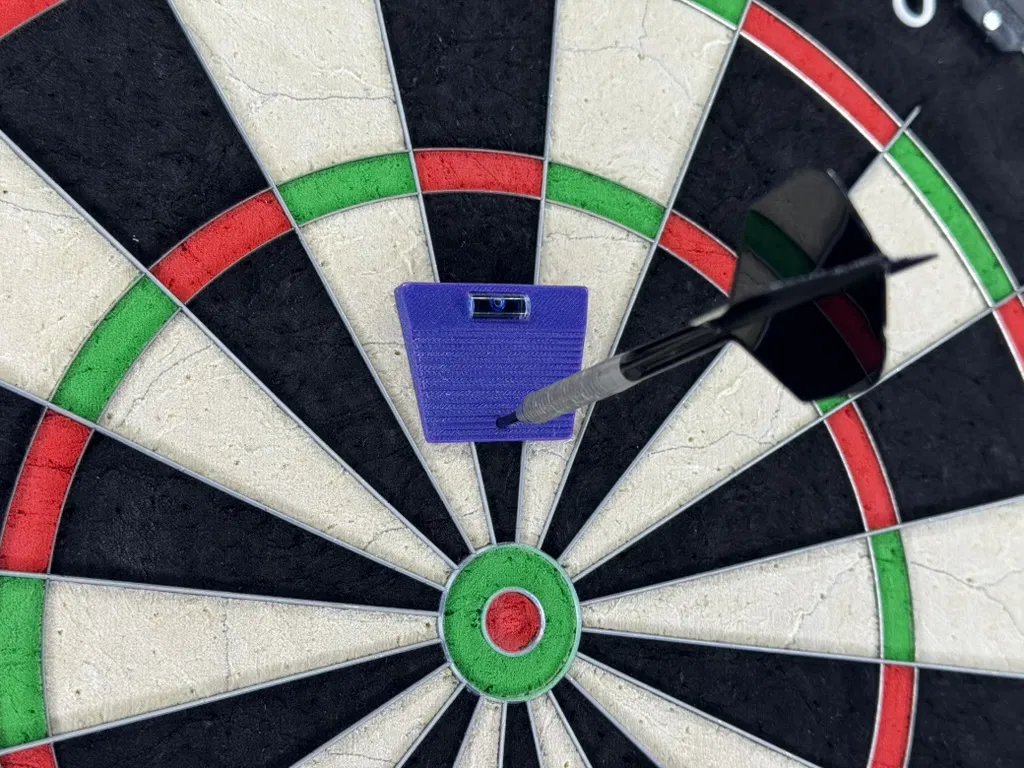 Một món đồ đơn giản, chính xác giúp bạn canh cho bộ bảng phi tiêu thẳng chuẩn. Thiết kế này được làm riêng để tái sử dụng những ống thủy cân (spirit bubble level) nhỏ, rời thường đi kèm thiết bị Ubiquiti UniFi (như Access Point và bộ ngàm treo), vốn hay bị bỏ xó rồi thành phí.