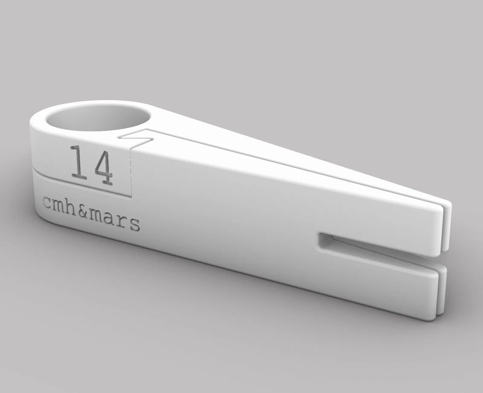 Bộ nêm nhỏ để giữ calipers của thắng đĩa xe đạp luôn tách ra khi tháo bánh. Khi không dùng, hai miếng có thể clip lại với nhau để cất gọn. Mỗi file in ra 1 cặp (pair).