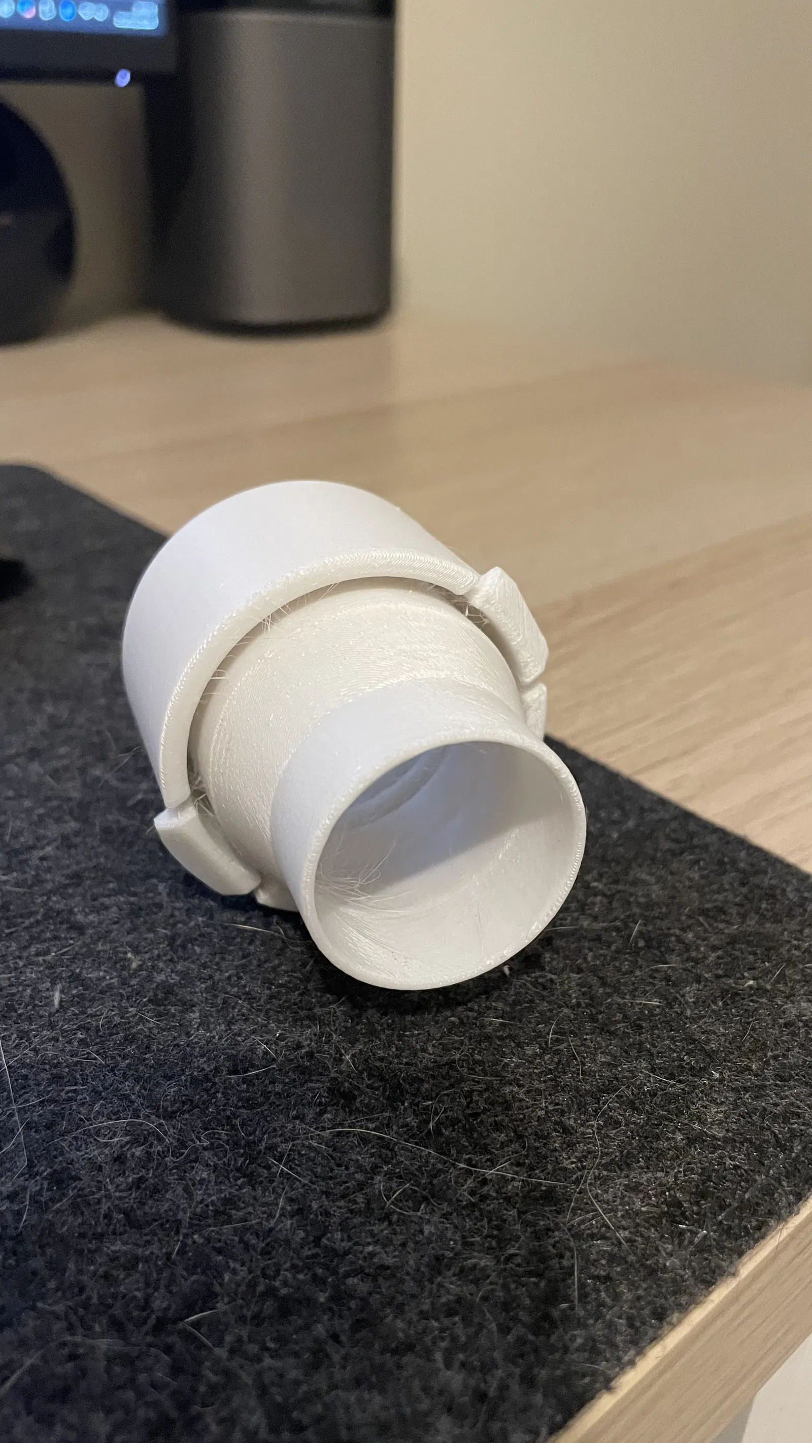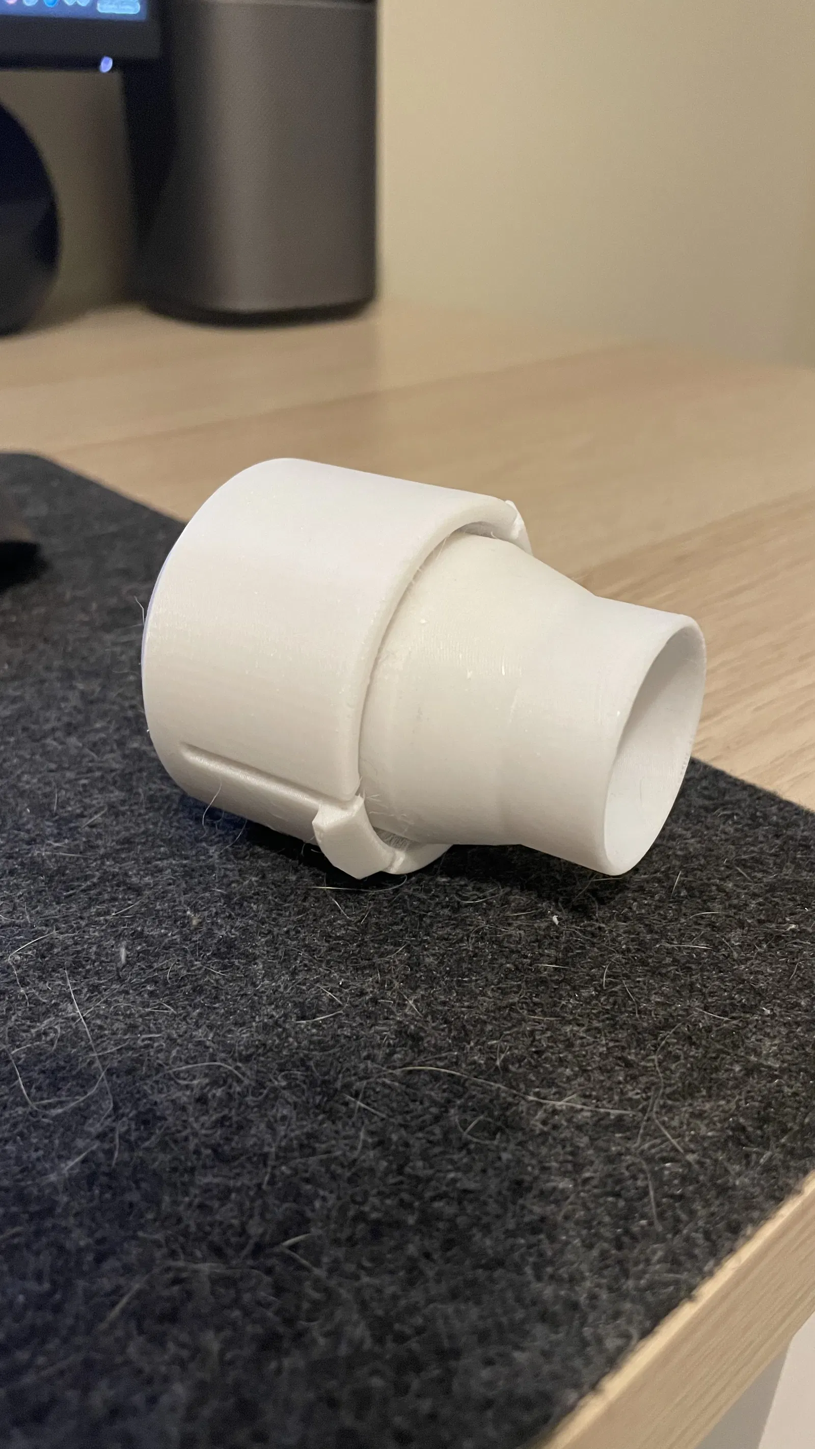Mấy cái ngàm (tab) nhựa trên đầu nối ống hút của máy hút bụi Nilfisk Power P10 bên mình xài một thời gian thì bị gãy, làm cho ống dễ tuột ra chỉ cần kéo nhẹ. Do hãng không bán rời đúng cái bộ phận này—bắt phải mua nguyên cụm ống mới mà giá thì mắc—nên mình quyết định reverse-engineer và làm lại (replicate) cái adapter.