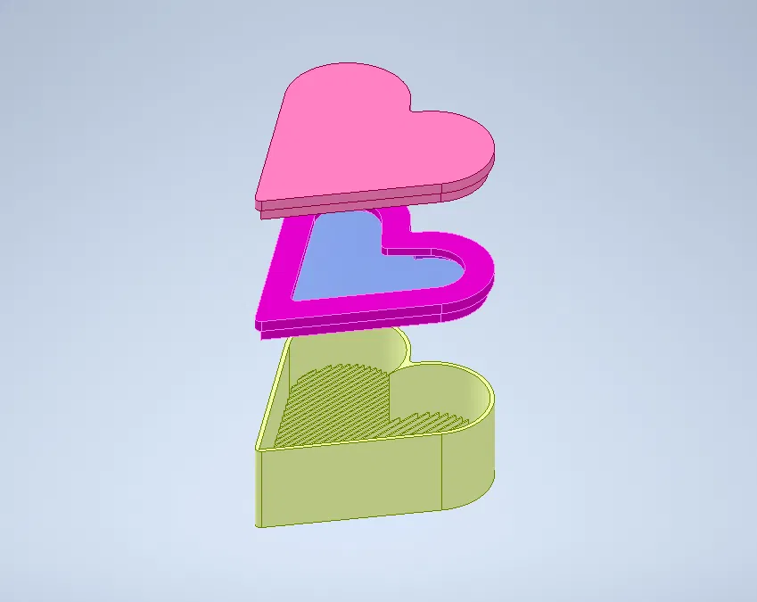 Hộp nhẫn Love phiên bản không magnets, nắp giữ bằng snap fit. Có 2 kiểu nắp: một màu (không insert) hoặc 2 màu (nắp + insert). In không cần supports, khoảng 2,5 giờ, khuyến nghị 0,2 layer height.