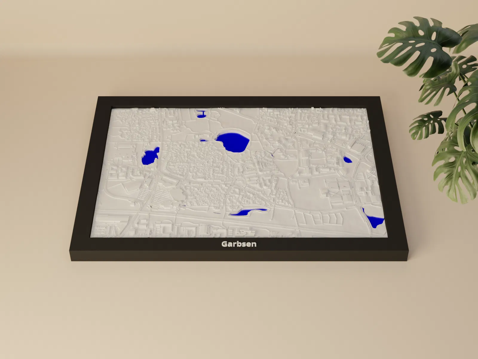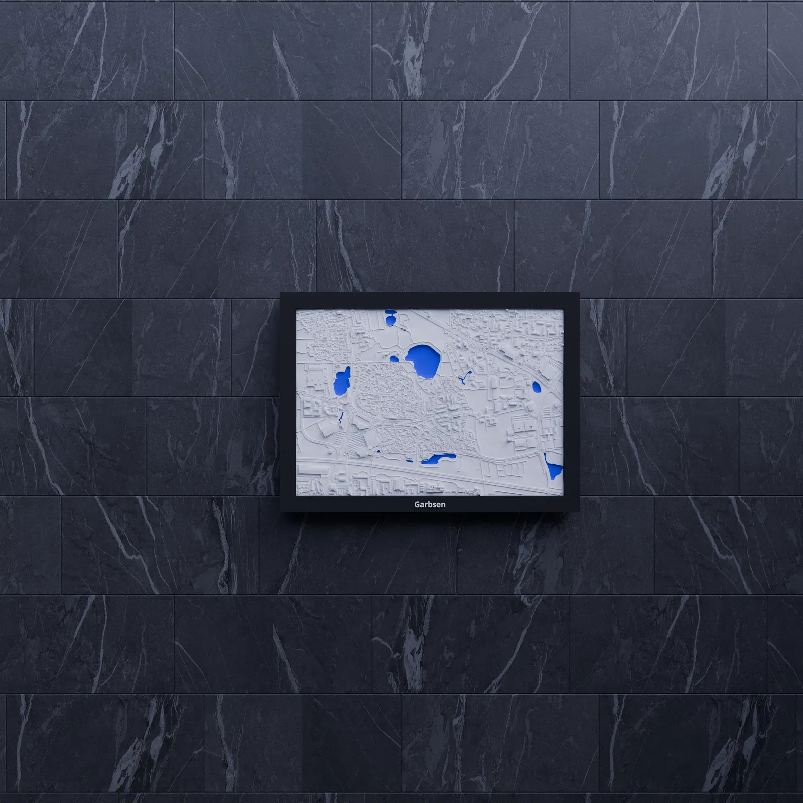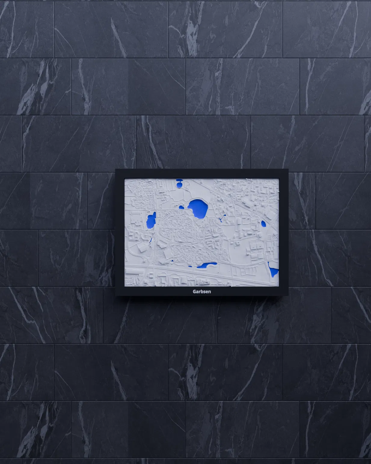 Tái hiện địa hình Garbsen (Đức) bằng mô hình topographic thu nhỏ in 3D, dựng từ dữ liệu địa lý để ra terrain chân thật. Kèm nhiều lựa chọn khung có lỗ treo, phù hợp trưng bày, học tập hay làm quà tặng.