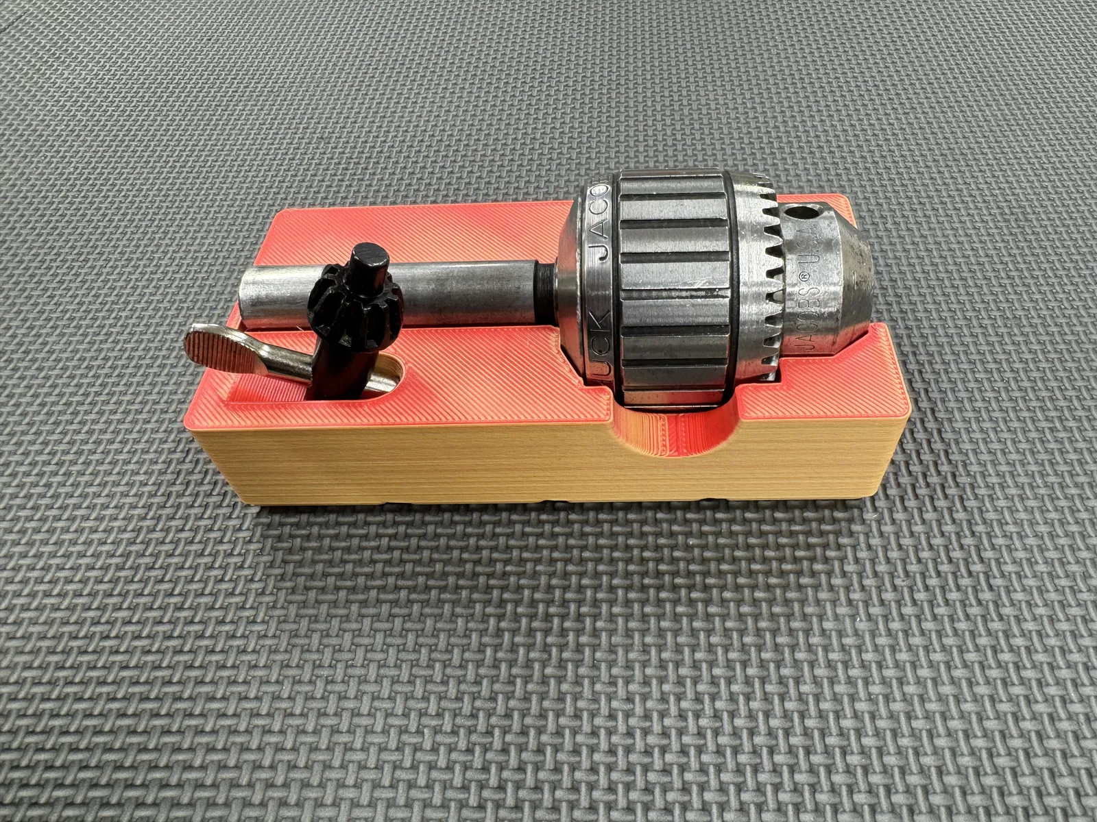 Bộ 2 Gridfinity holders dành cho Jacobs 14N ball bearing Super Chuck, tương thích 2 biến thể arbor (3/4" thẳng và R8). Có kèm file STEP để chỉnh sửa theo arbor của bạn; đế hỗ trợ nam châm 6x3 press fit và có “mouse ears” chống cong vênh.