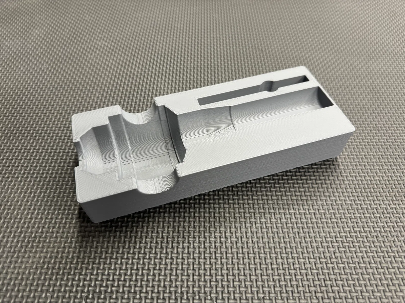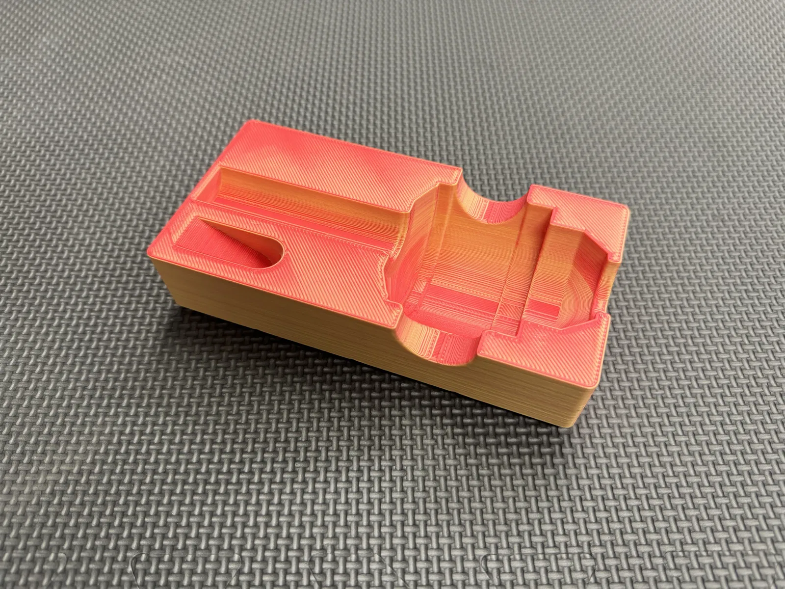 Giống mấy mẫu Gridfinity khác của mình, phần đế được chỉnh để lắp nam châm 6x3 theo kiểu press fit, và miệng lỗ nam châm phía trên cũng được sửa để slicer bridge qua đúng cách cho bề mặt sạch đẹp. Do kích thước mẫu khá lớn, mình có thêm “mouse ears” dạng hy sinh trong CAD để tăng diện tích bám ở hai đầu, giúp hạn chế cong vênh nhấc khỏi bed. In xong bạn sẽ cần cắt/bẻ bỏ phần này.