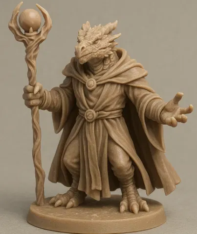 Mẫu mini Dragonborn Warlock cho Dungeons and Dragons. Khi in 3D, bạn cần thêm supports cho model để tránh lỗi in, đặc biệt ở các phần nhô ra và chi tiết nhỏ.
