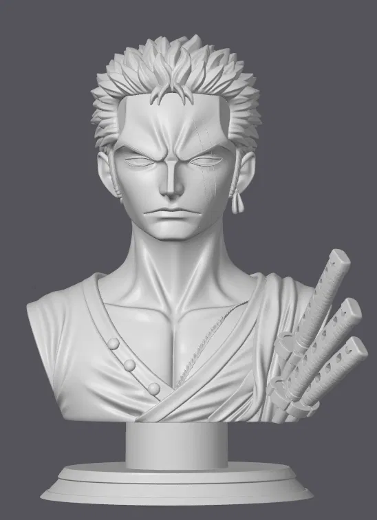 Đây là một bust premium để in 3D của Roronoa Zoro, chiến binh huyền thoại của băng Hải Tặc Mũ Rơm. Mẫu này lột tả ánh nhìn tập trung cao độ của Zoro, kèm bộ ba bông tai biểu tượng và vết sẹo đặc trưng trên mắt.
